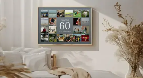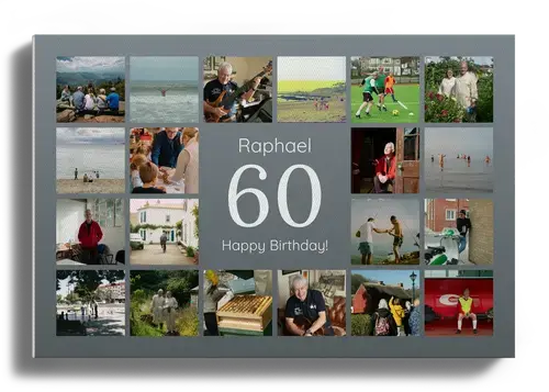 Ideale per 60° compleanno, nozze di diamante o pensione: collage 60 personalizzabile.
