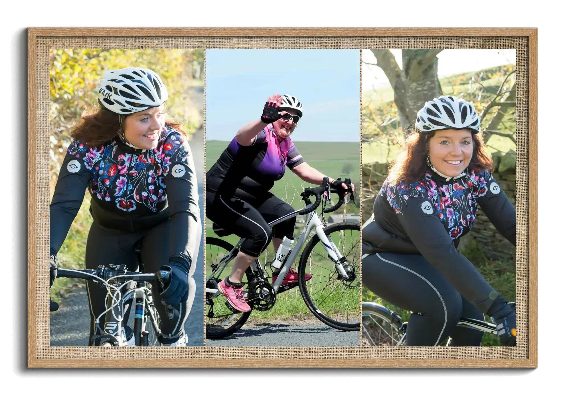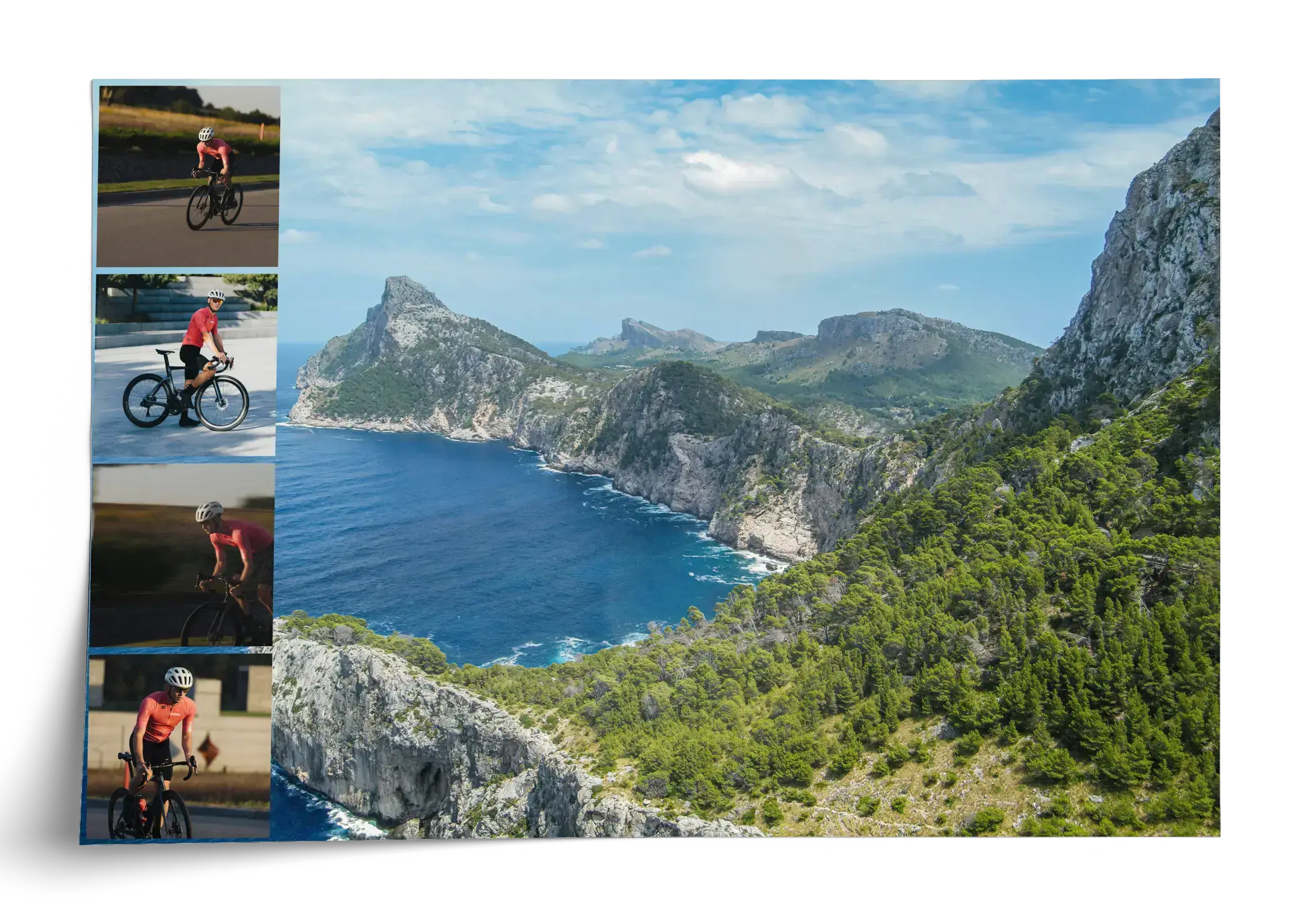 Modello bici da corsa per ciclisti e team, perfetto per tour e ricordi in fotocollage.