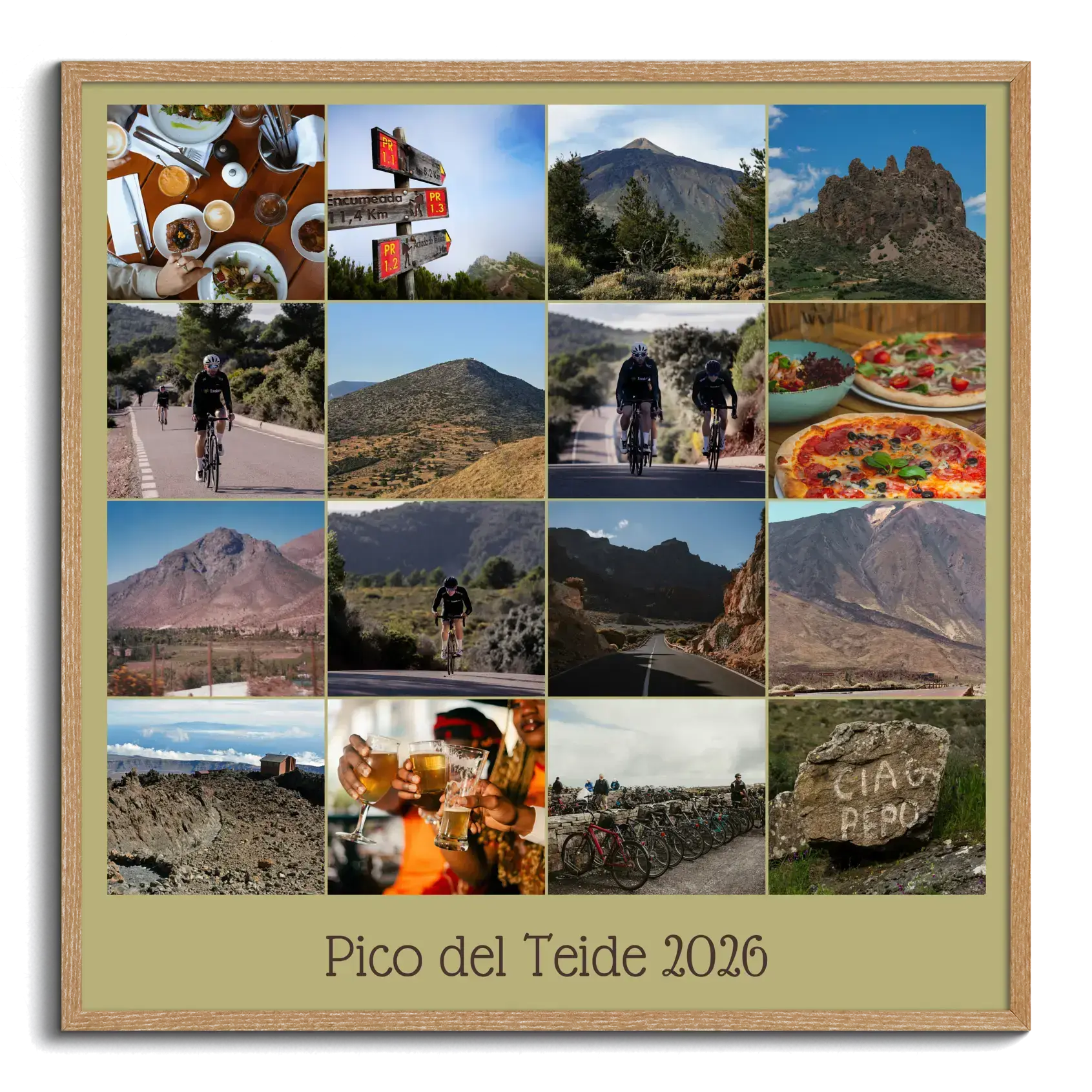 Questo modello è ideale per celebrare una granfondo, una vacanza in bici, una stagione di gare, un tour con amici o un traguardo sportivo importante. È anche una bella idea regalo per ciclisti, squadre, allenatori o appassionati di sport che vogliono conservare i momenti più belli in una forma originale e decorativa.