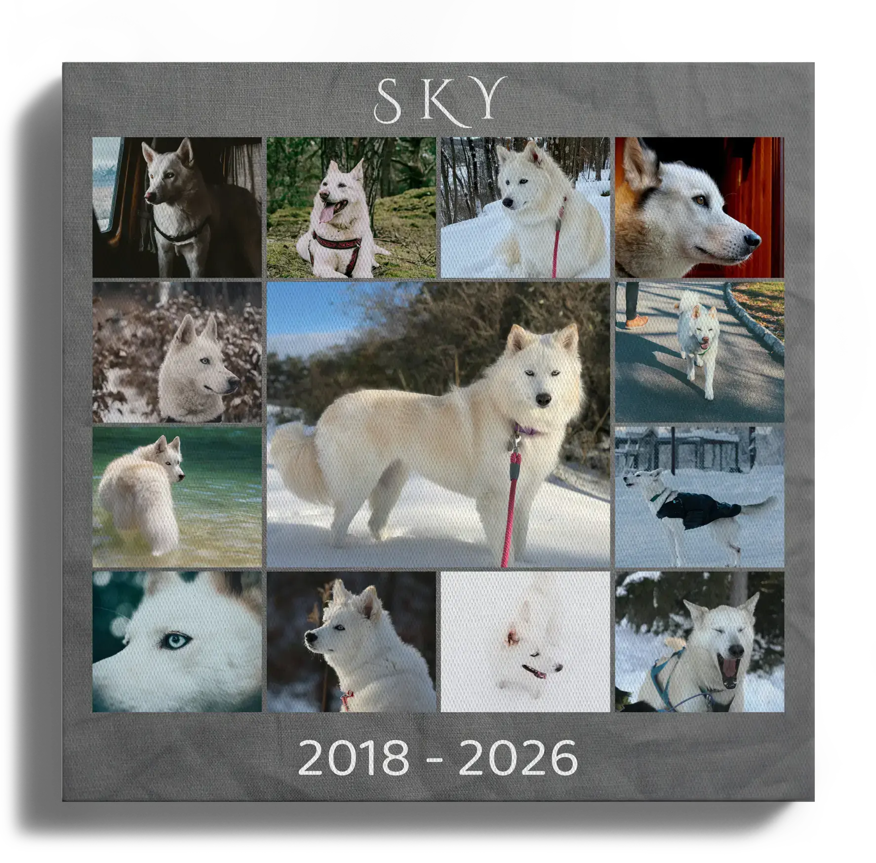 Collage ricordo del tuo cane: crea ora con foto, dedica, nome, anni ❤️