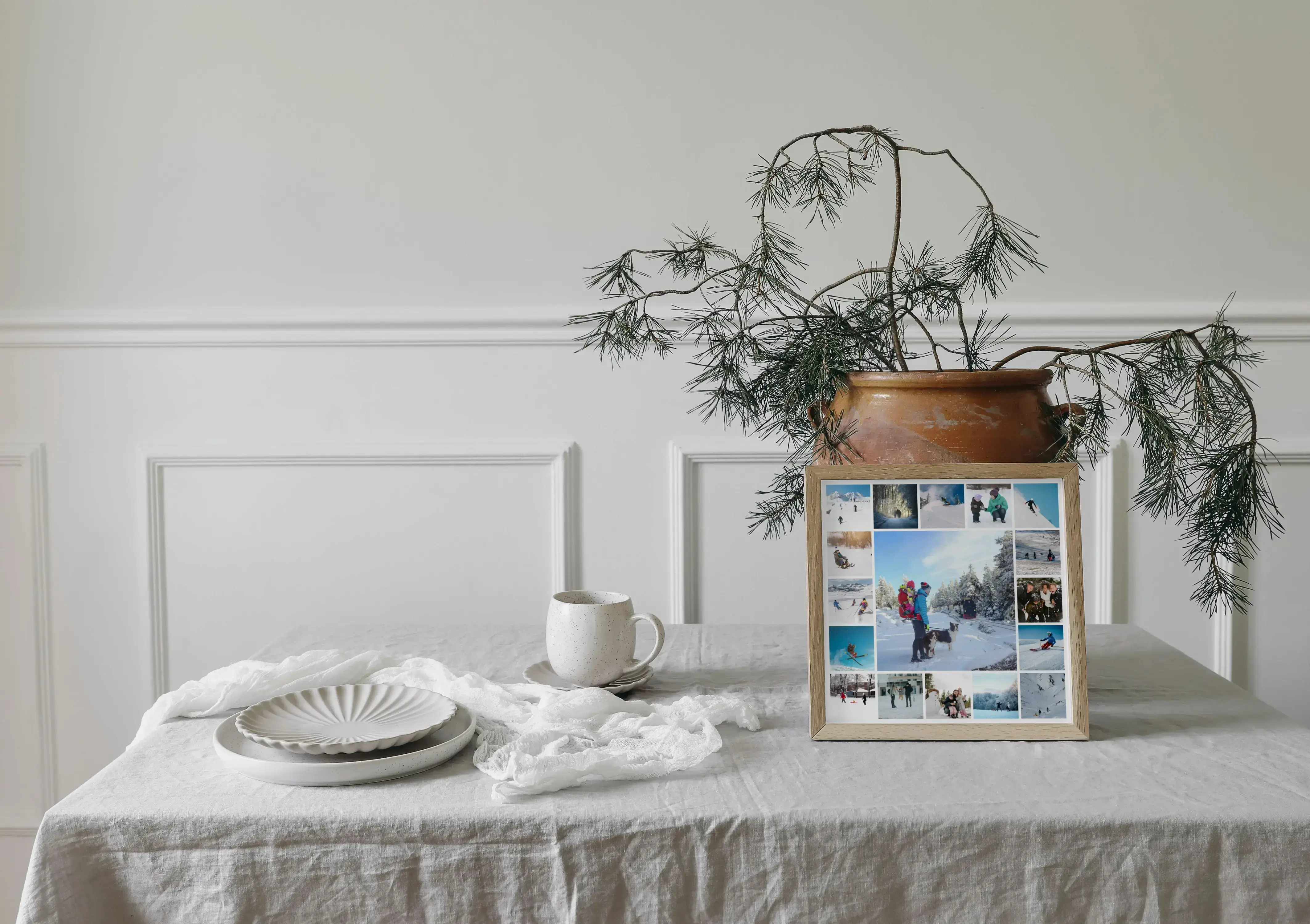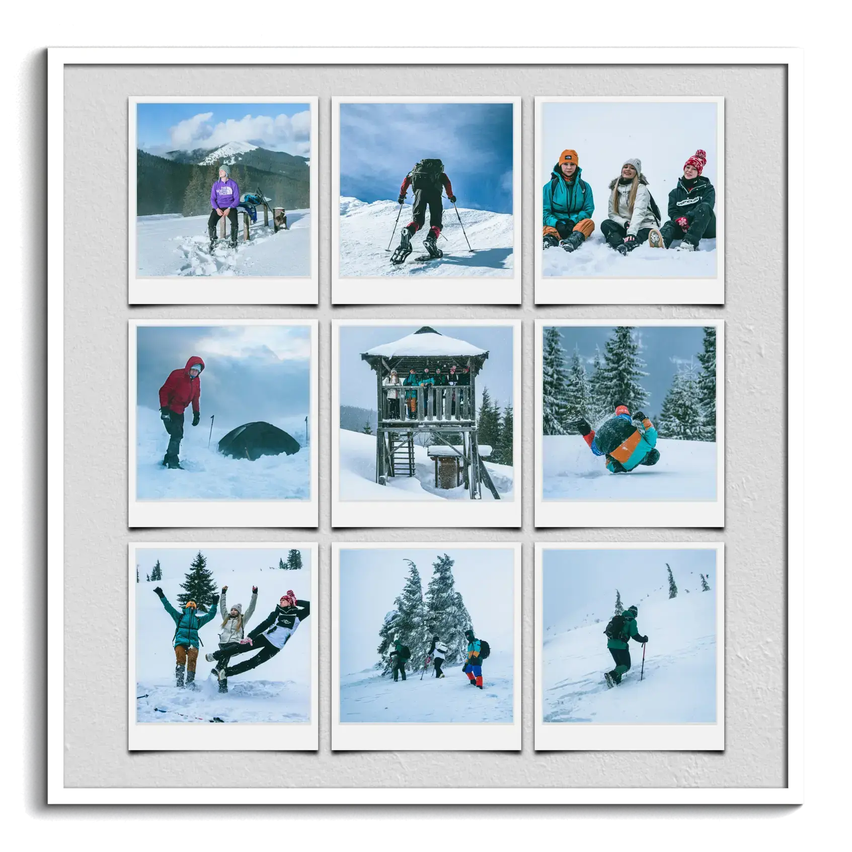 Crea incantevoli collage invernali con foto di paesaggi e famiglia, testi personalizzati inclusi.