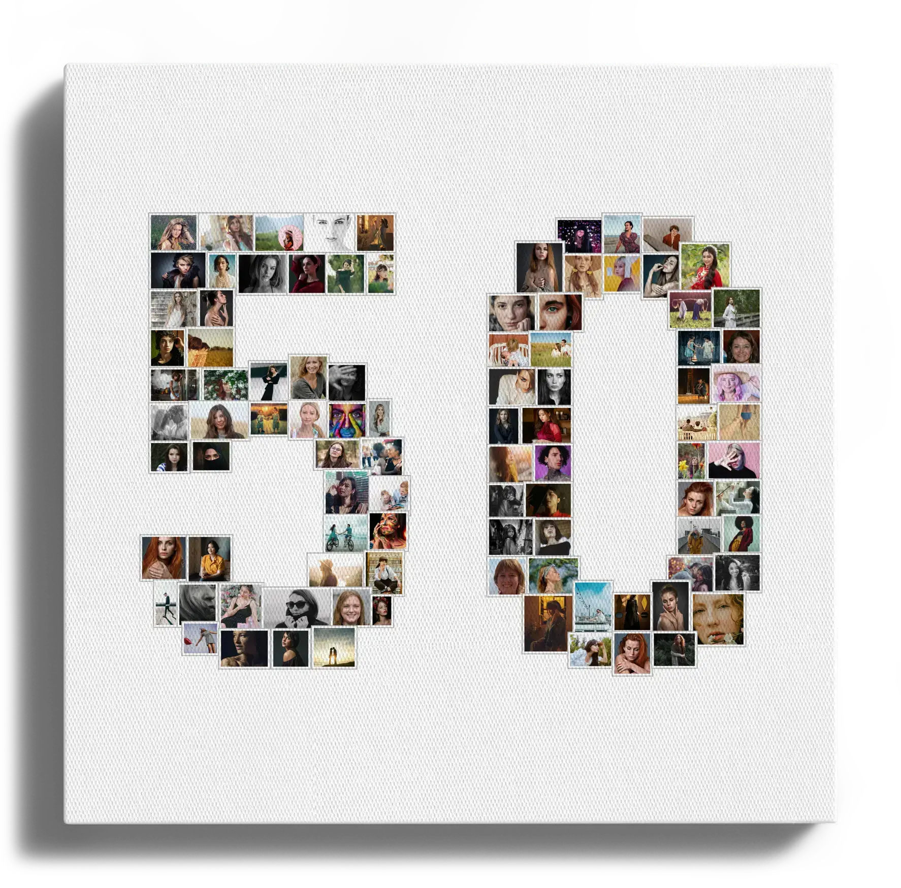 Scopri la bellezza di creare una fotocollage personalizzata da te stesso. Immagina un collage a forma di numero 50, composto da una moltitudine di tue foto preziose, ideale per celebrare un compleanno o una festa di nozze d'oro. Decidi tu quanti scatti includere, da 1 a 100, e rendi il tuo regalo ancora più speciale.