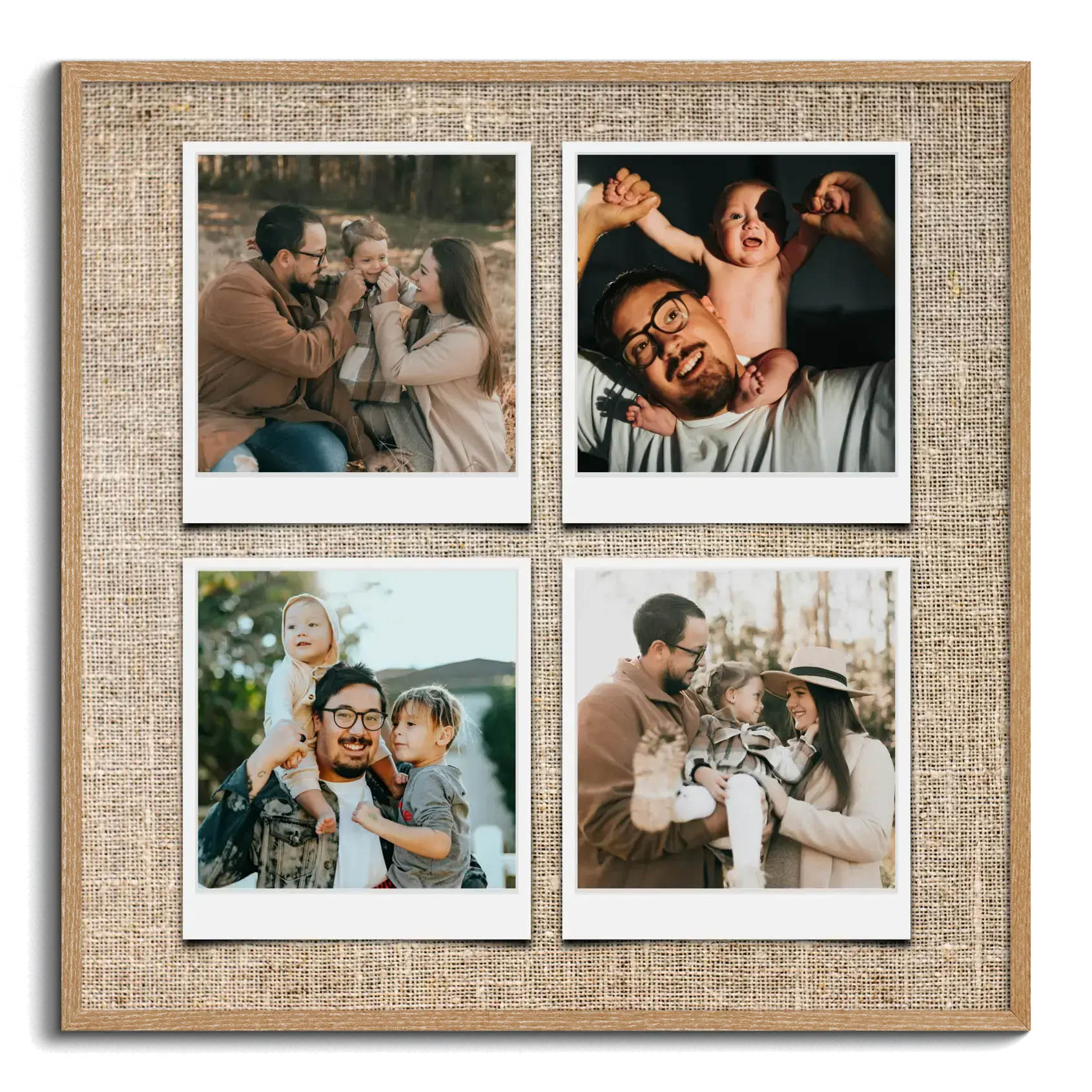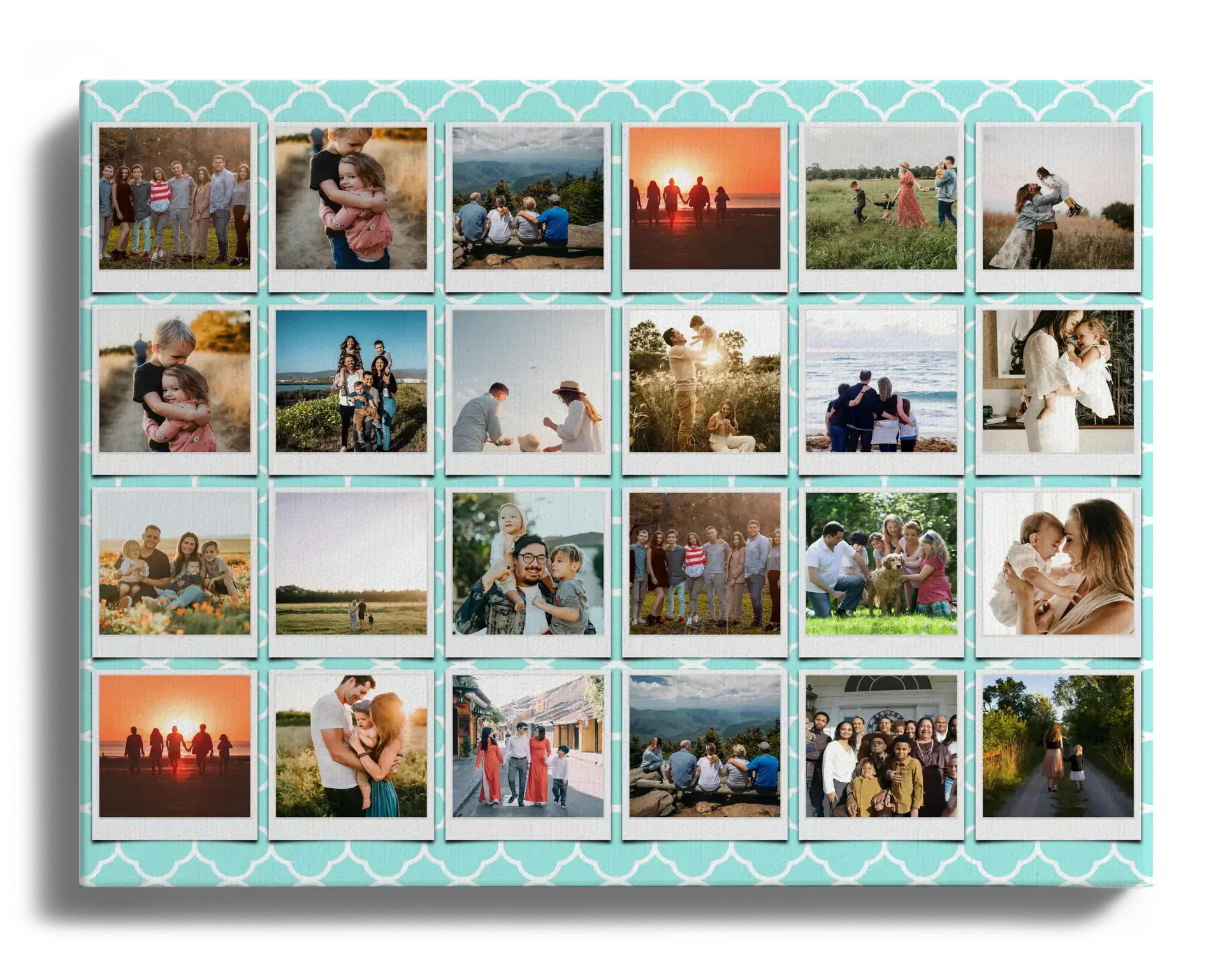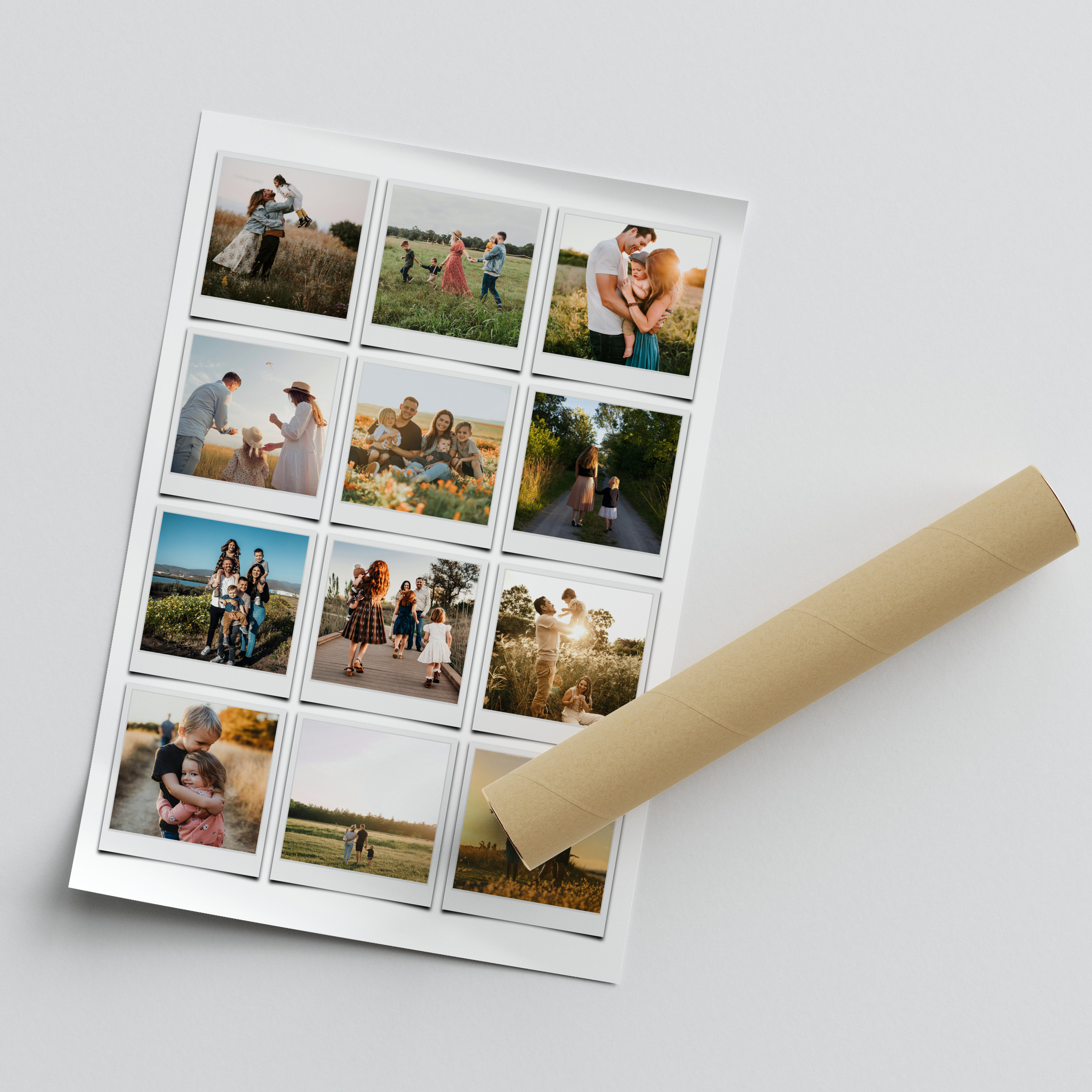 Crea e ordina subito il tuo poster famiglia in stile Polaroid. Raccoglie i vostri momenti in una composizione di Polaroid dal bordo bianco: puoi scrivere su ogni foto e anche sul titolo generale. Aggiungi Per sempre famiglia, i nomi dei membri, una data o un pensiero.