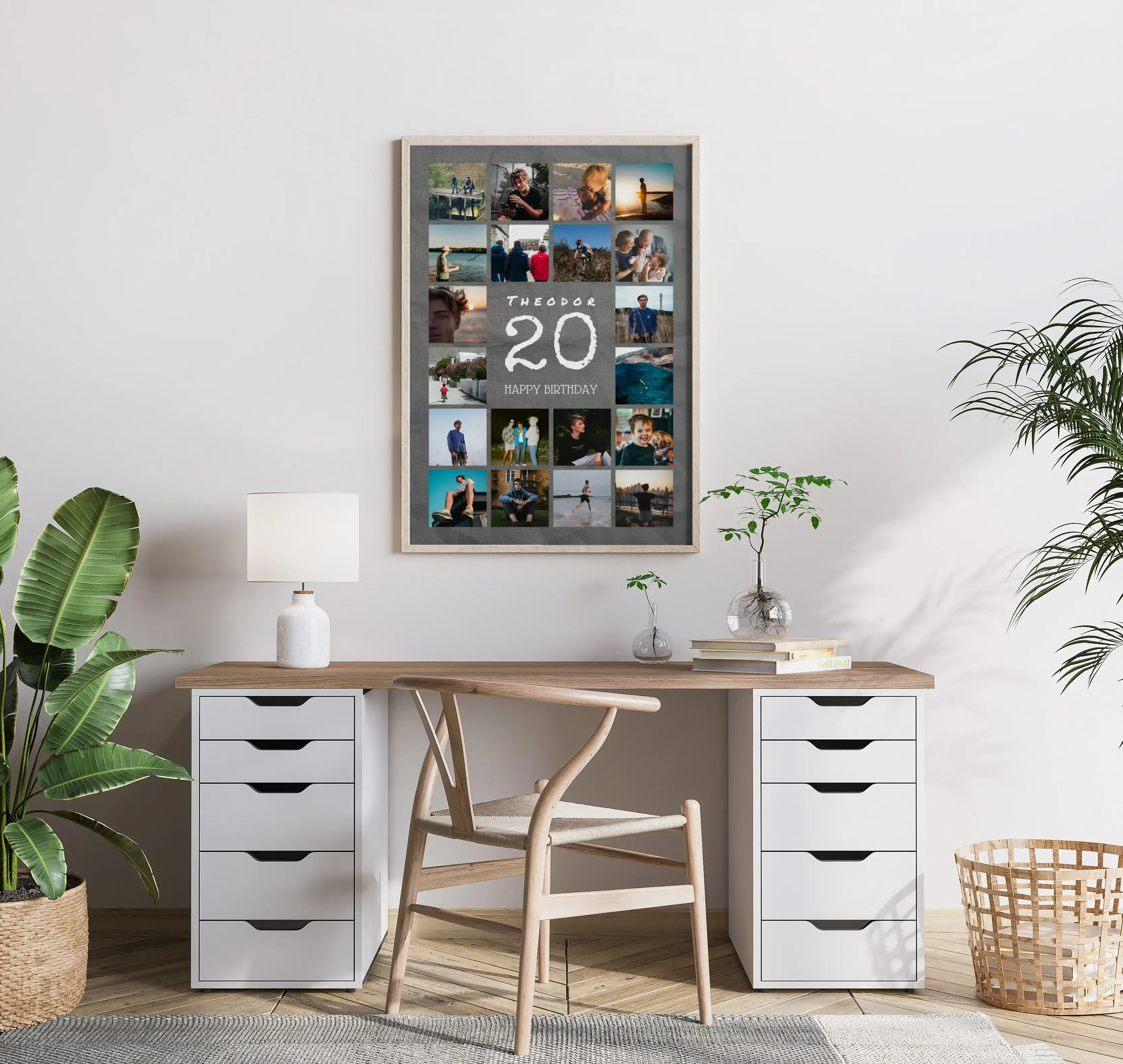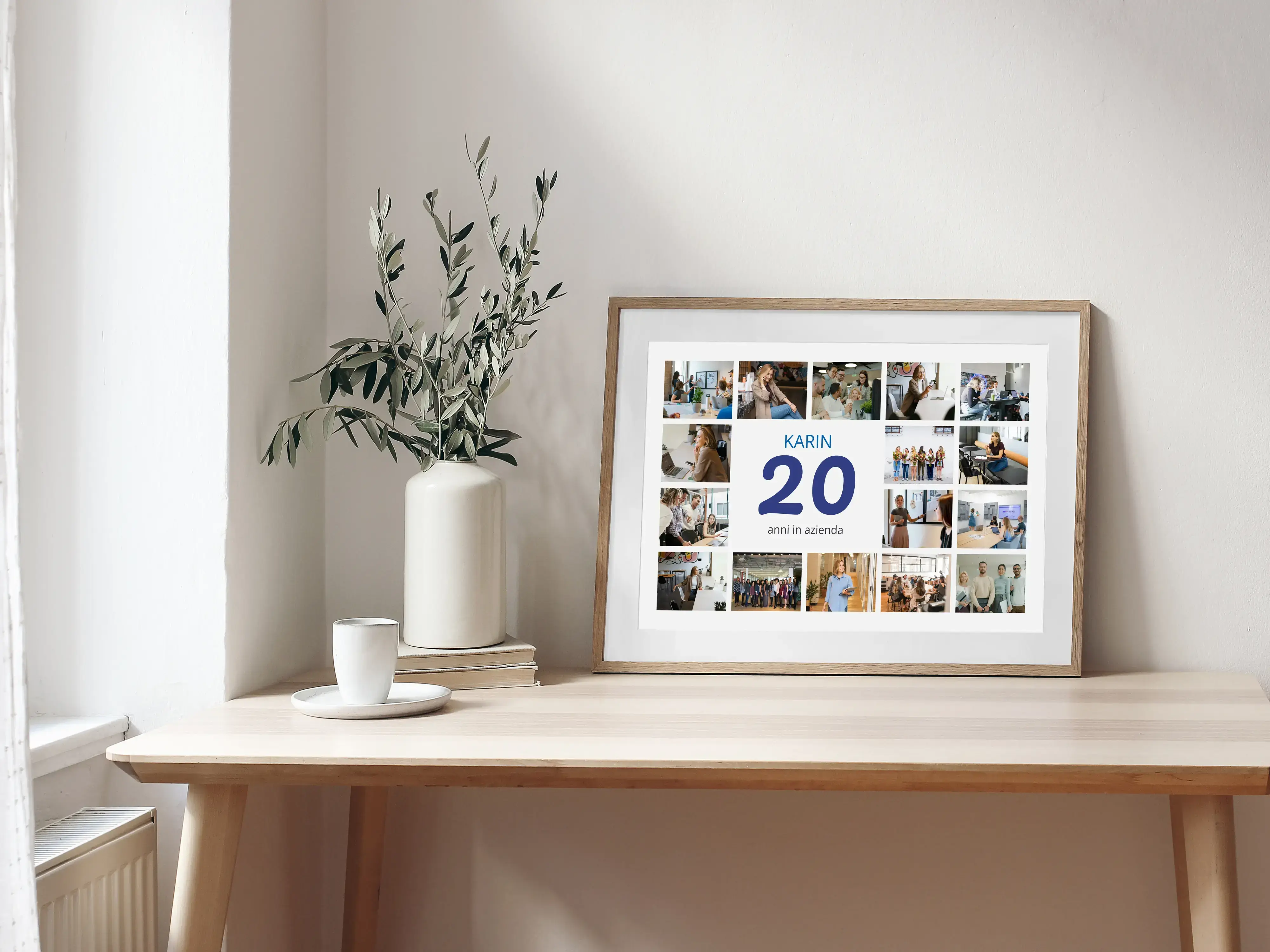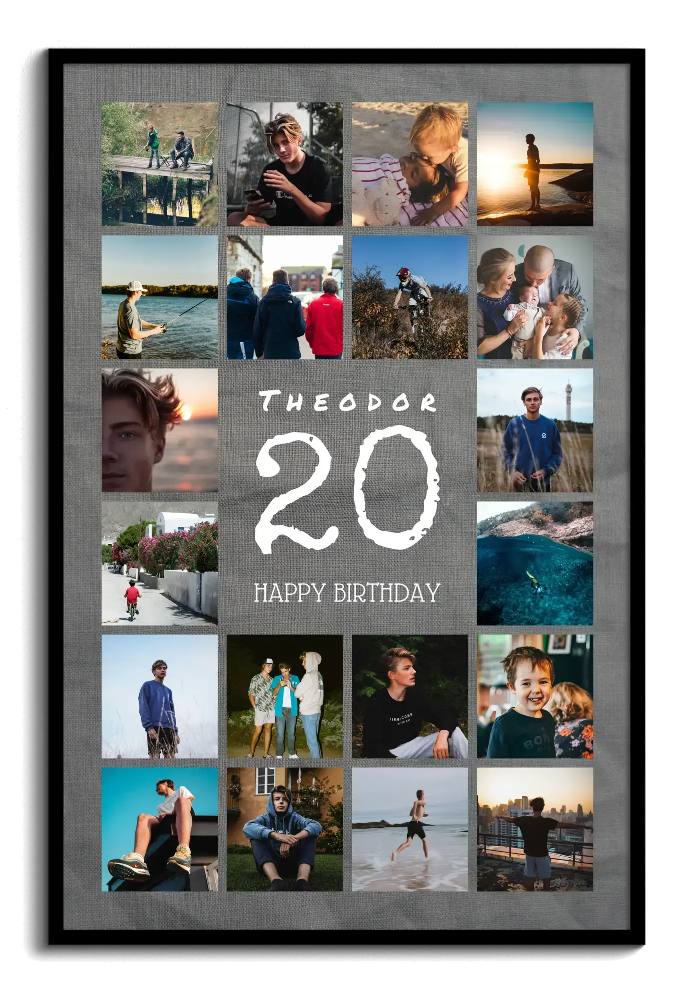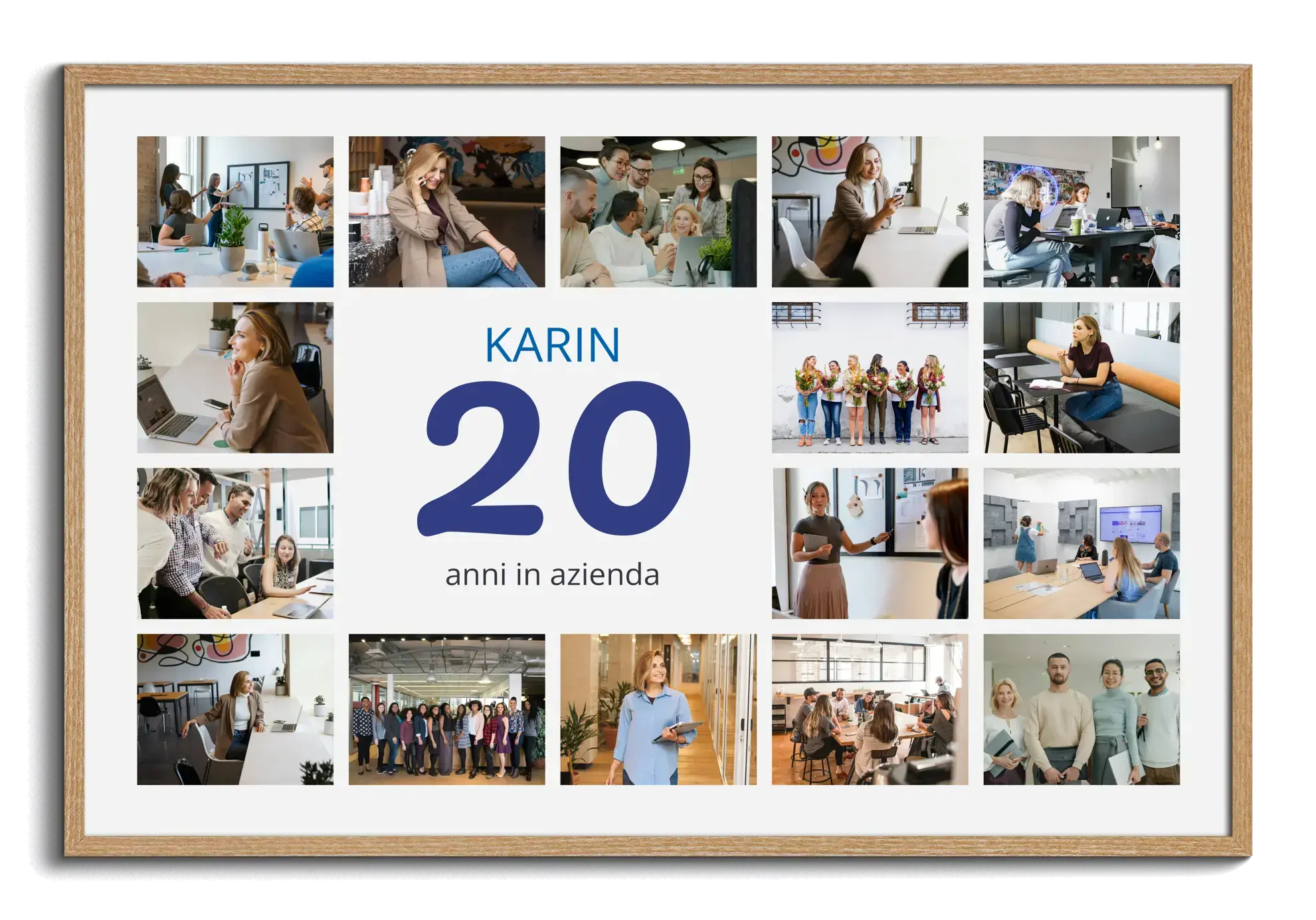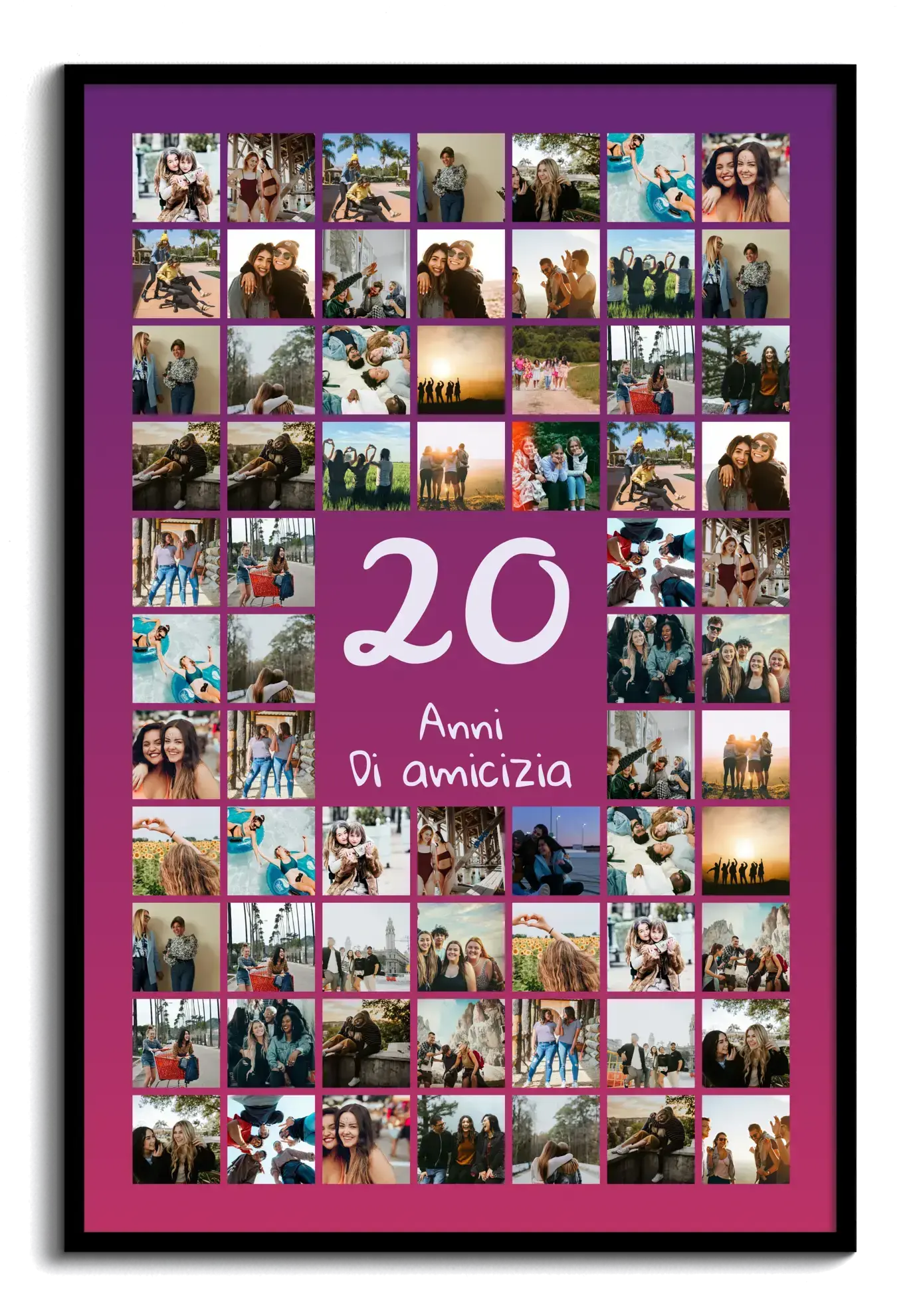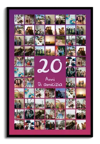 Per un 20° compleanno, le nozze di porcellana, 20 anni di amicizia o 20 anni in azienda: celebra una tappa importante con una stampa che racconta volti e momenti. Perfetta anche per una squadra, una classe o un progetto che spegne 20 candeline. Regala emozione e ricordo in un’unica soluzione.
