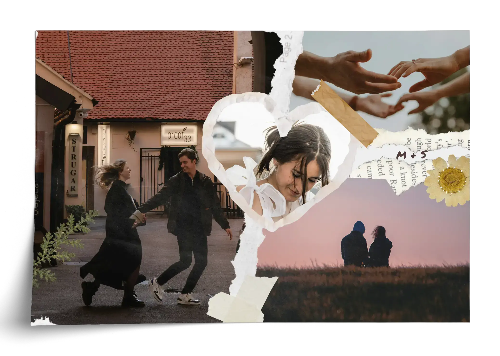 Crea subito la tua stampa personalizzata in stile scrapbook dedicata ai momenti preferiti. Le foto vengono disposte come ritagli di carta, arricchite da elementi tape e piccoli dettagli decorativi, per un risultato creativo e affettuoso, perfetto per ricordare famiglia, amici, viaggi, feste ed eventi speciali.