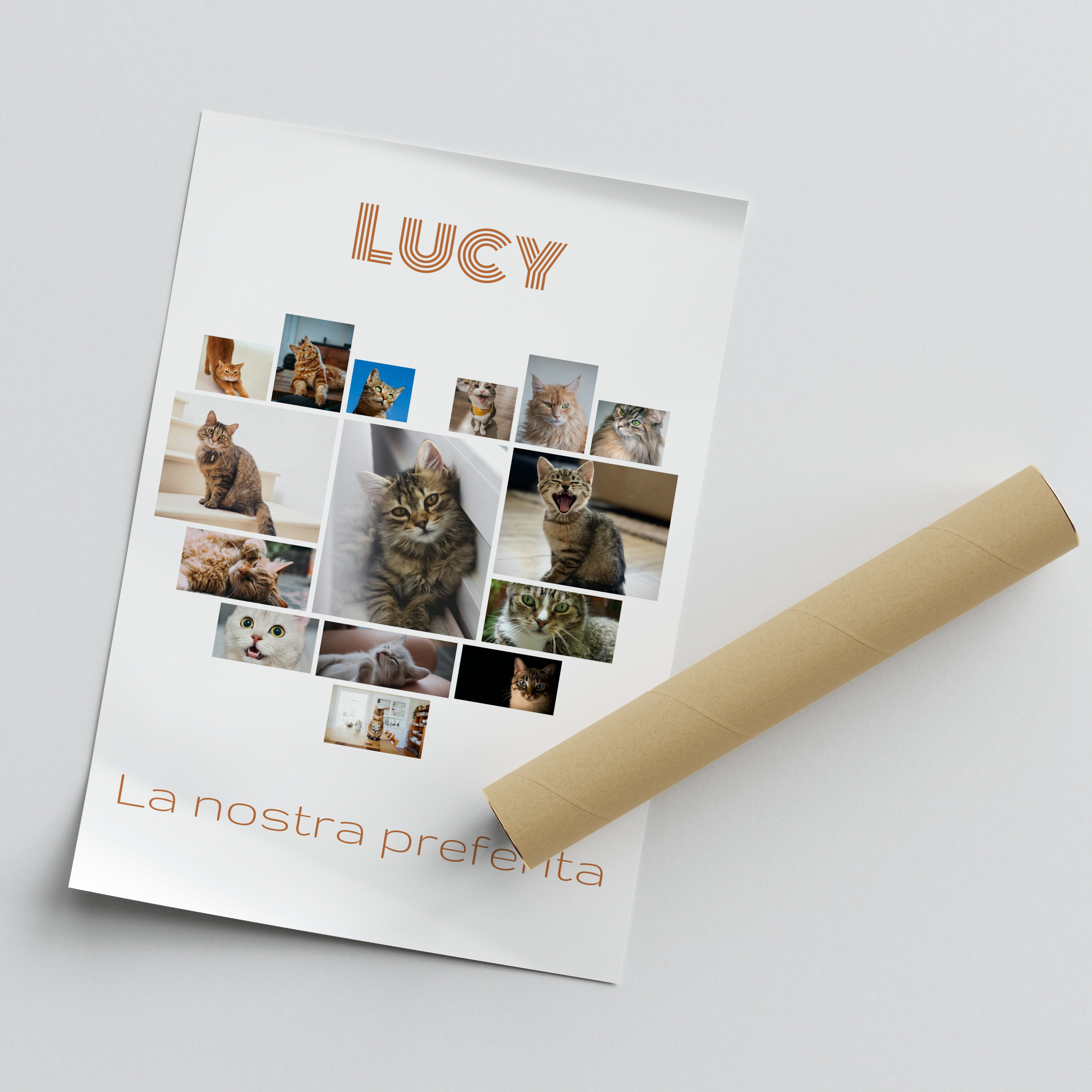Foto del gatto in un collage a cuore, con testi personalizzati: nome o dedica.