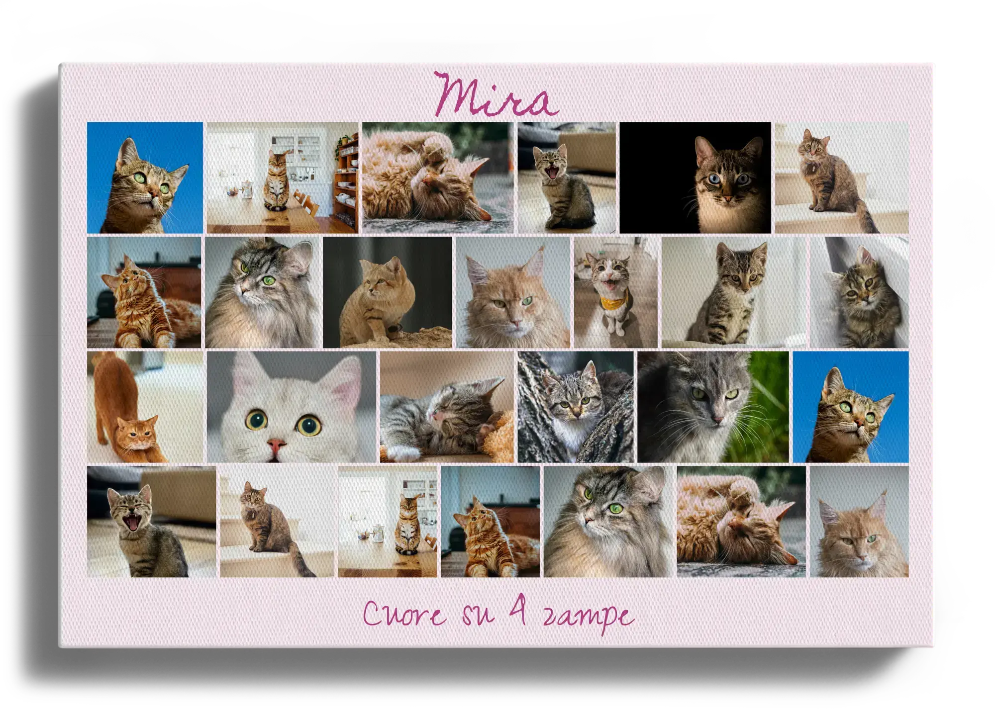 Foto del proprio gatto in vari modelli di collage, con testi come Cuore su 4 zampe.