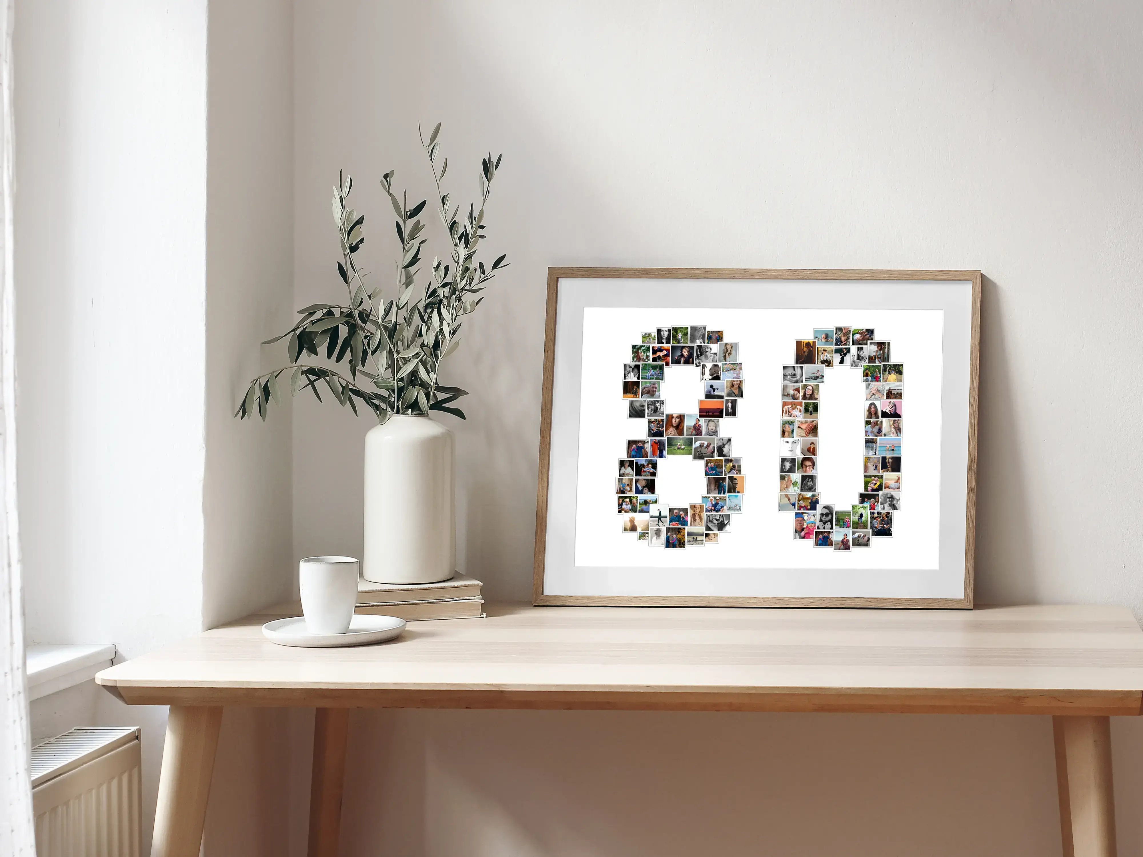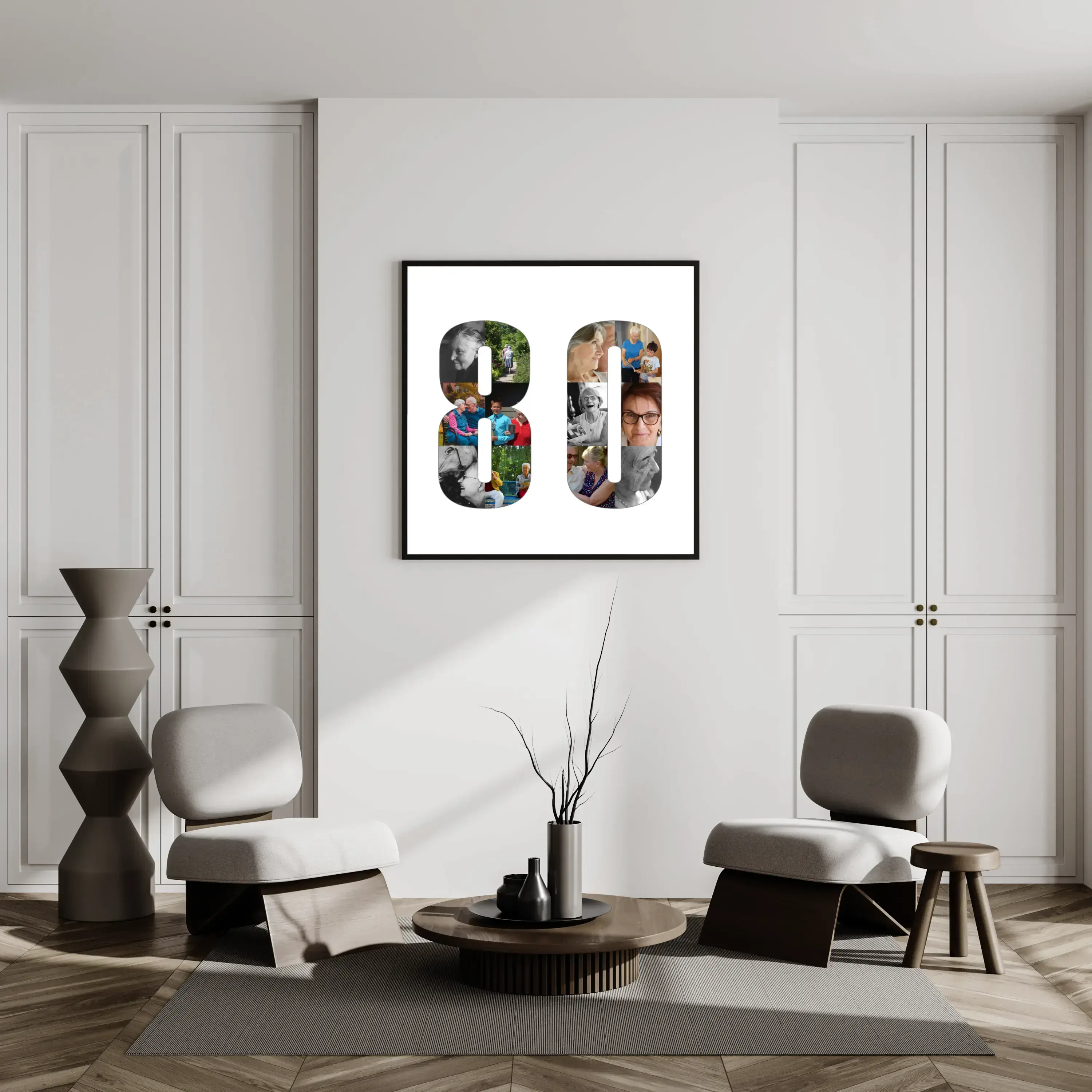 Crea la tua speciale fotocollage e trasforma i tuoi ricordi in un'opera d'arte personalizzata! Immagina di festeggiare un ottantesimo compleanno con una spettacolare rappresentazione della cifra '80', composta da decine di foto significative. Che si tratti di una giornata importante o un simbolo di amicizia eterna, questa fotocollage sarà un regalo indimenticabile.