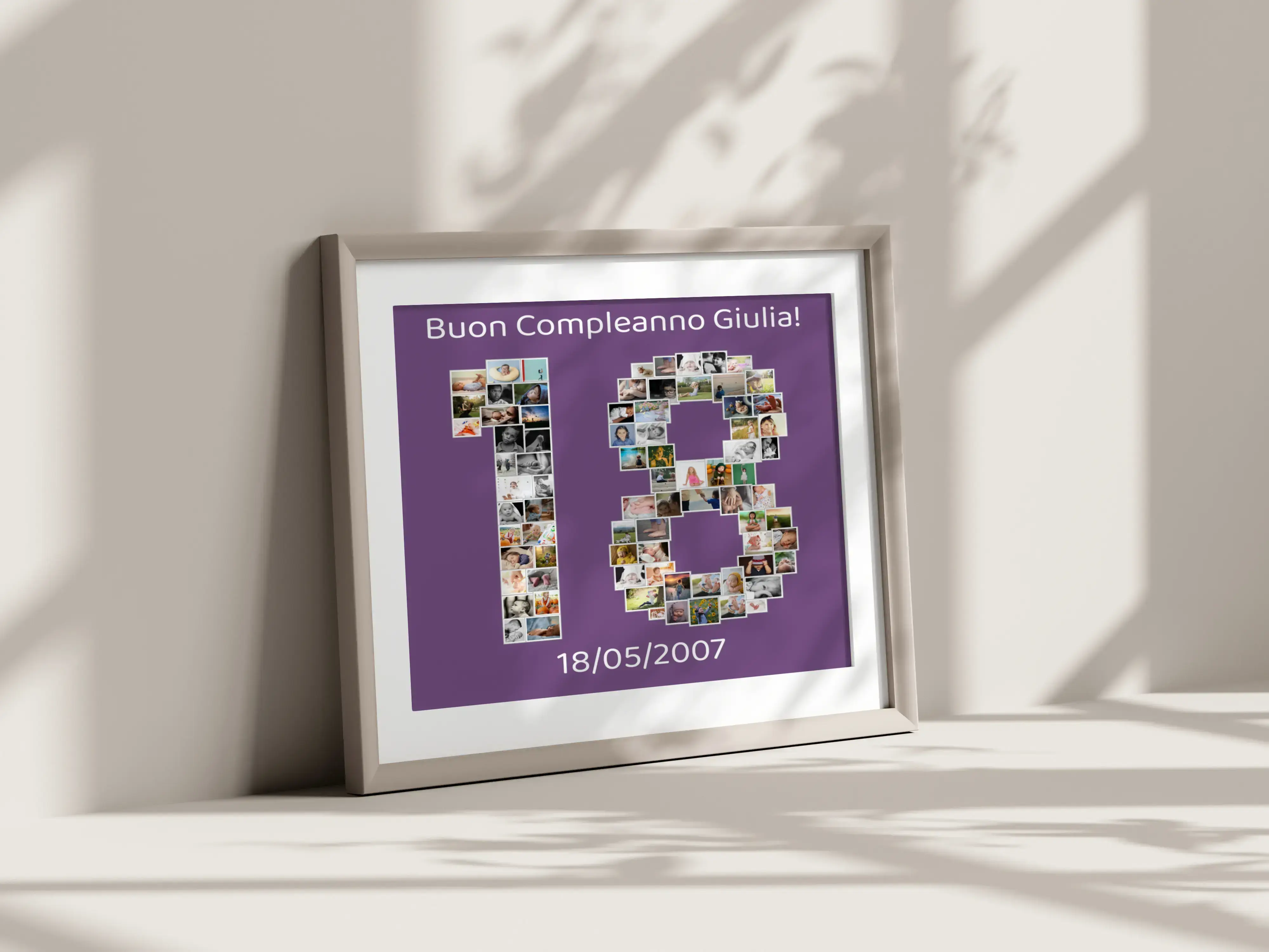 Collage numero 18: trasforma ricordi in un regalo unico per compleanni e maggiorenni.