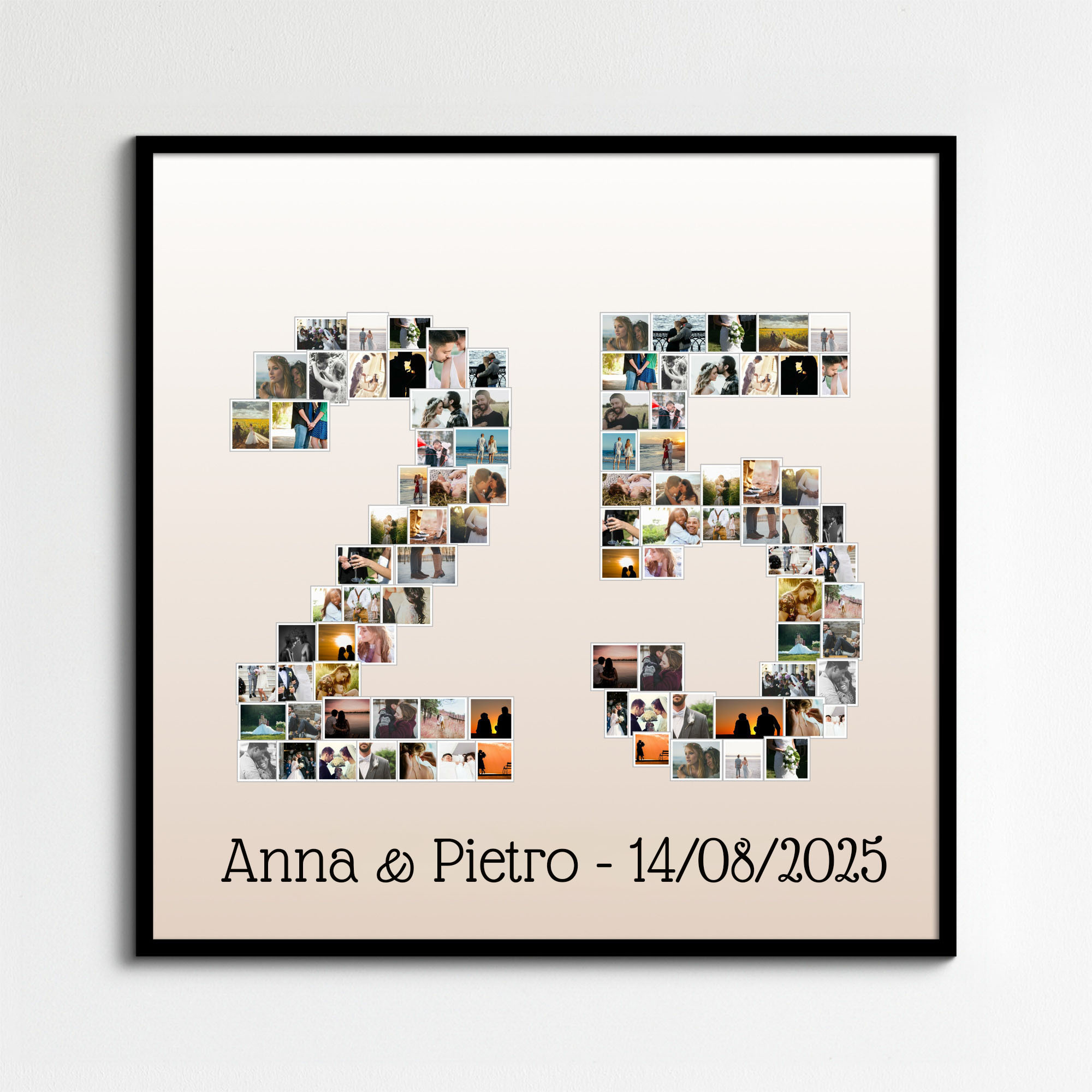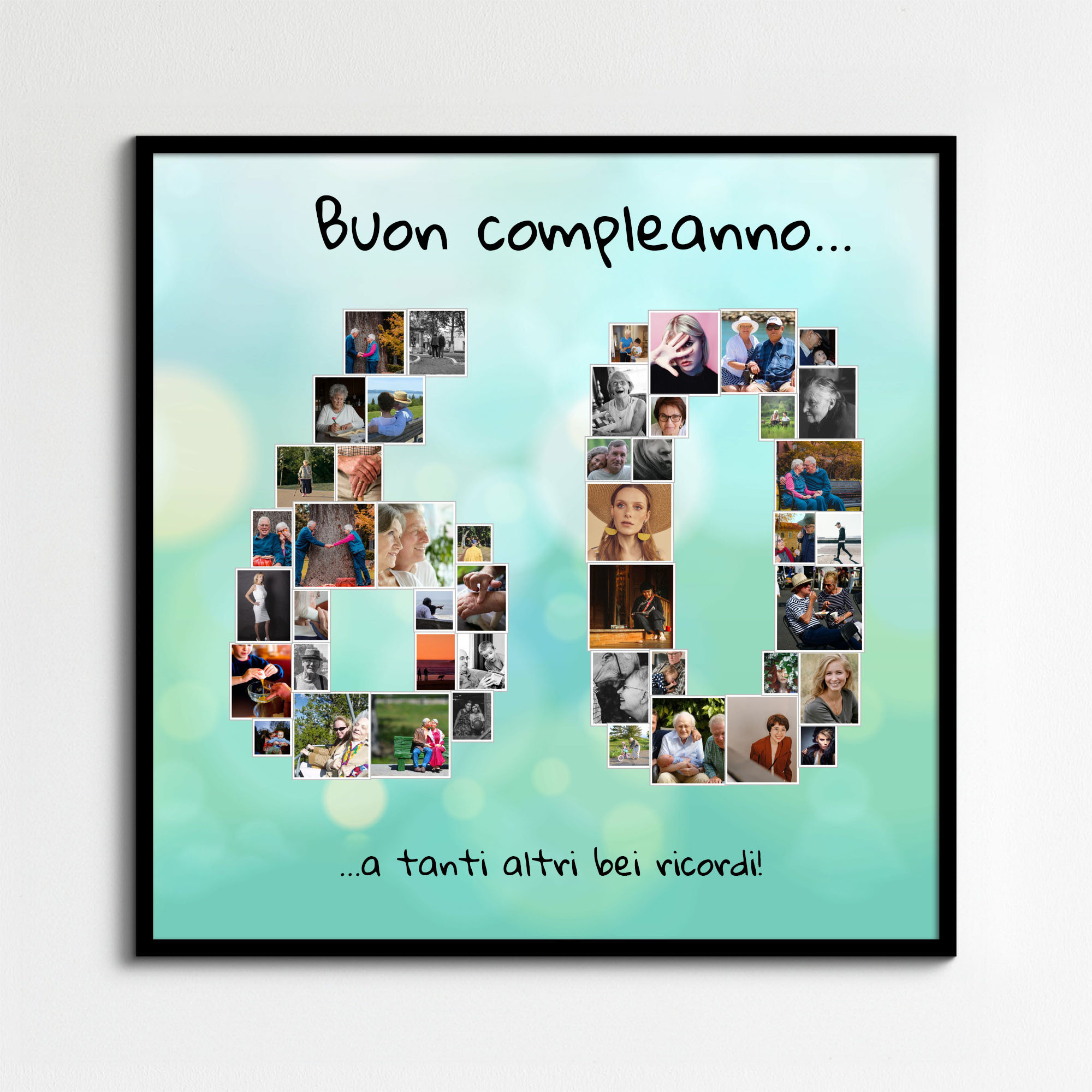 Collage numerica ideale per compleanni o anniversari, personalizzabile con foto e testo.