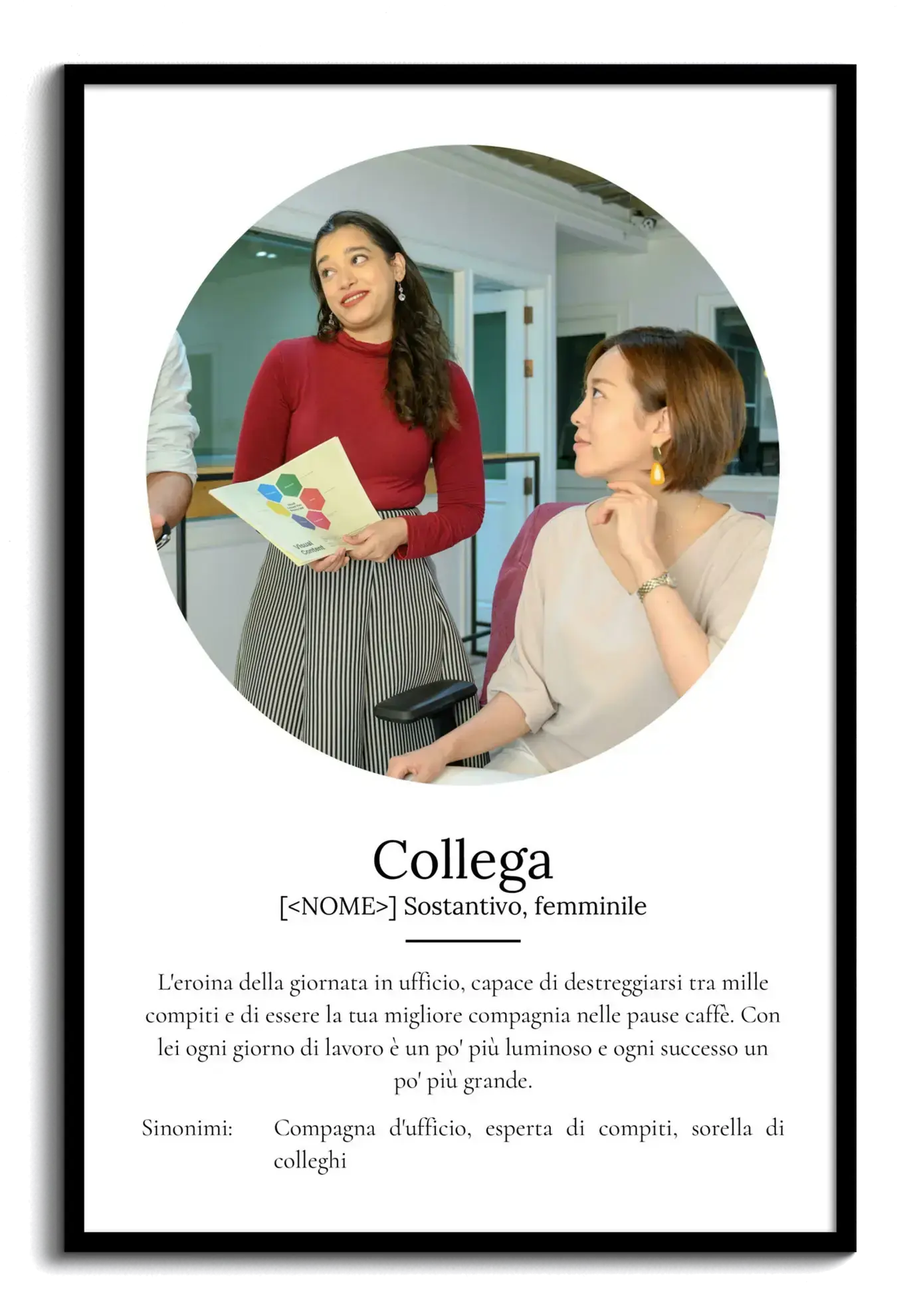 Regalo unico per la collega: definizione personalizzabile e foto che illuminano ogni giornata lavorativa.