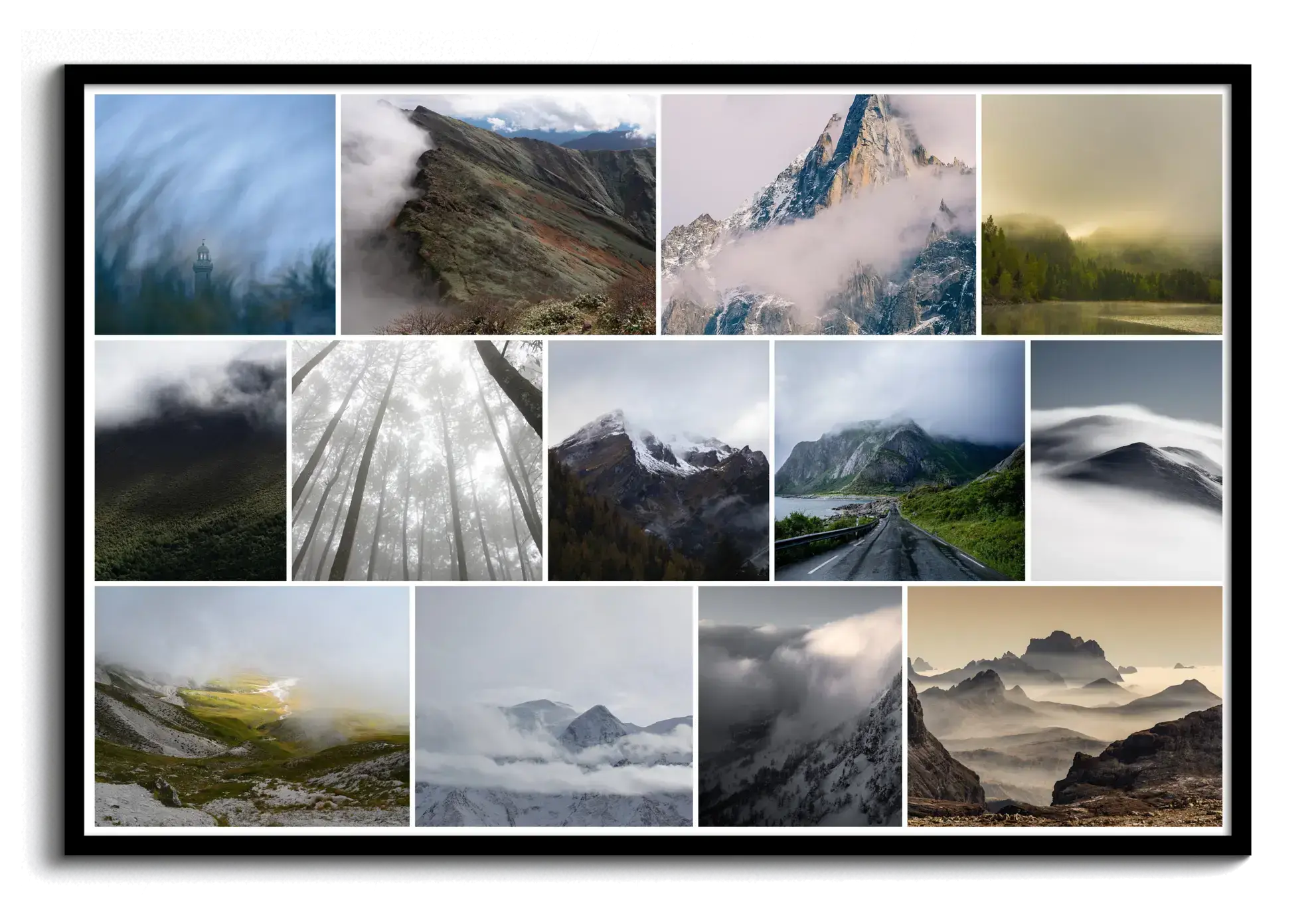 Collage foto natura e meteo: crea il tuo collage e stampa premium nebbia e temporali