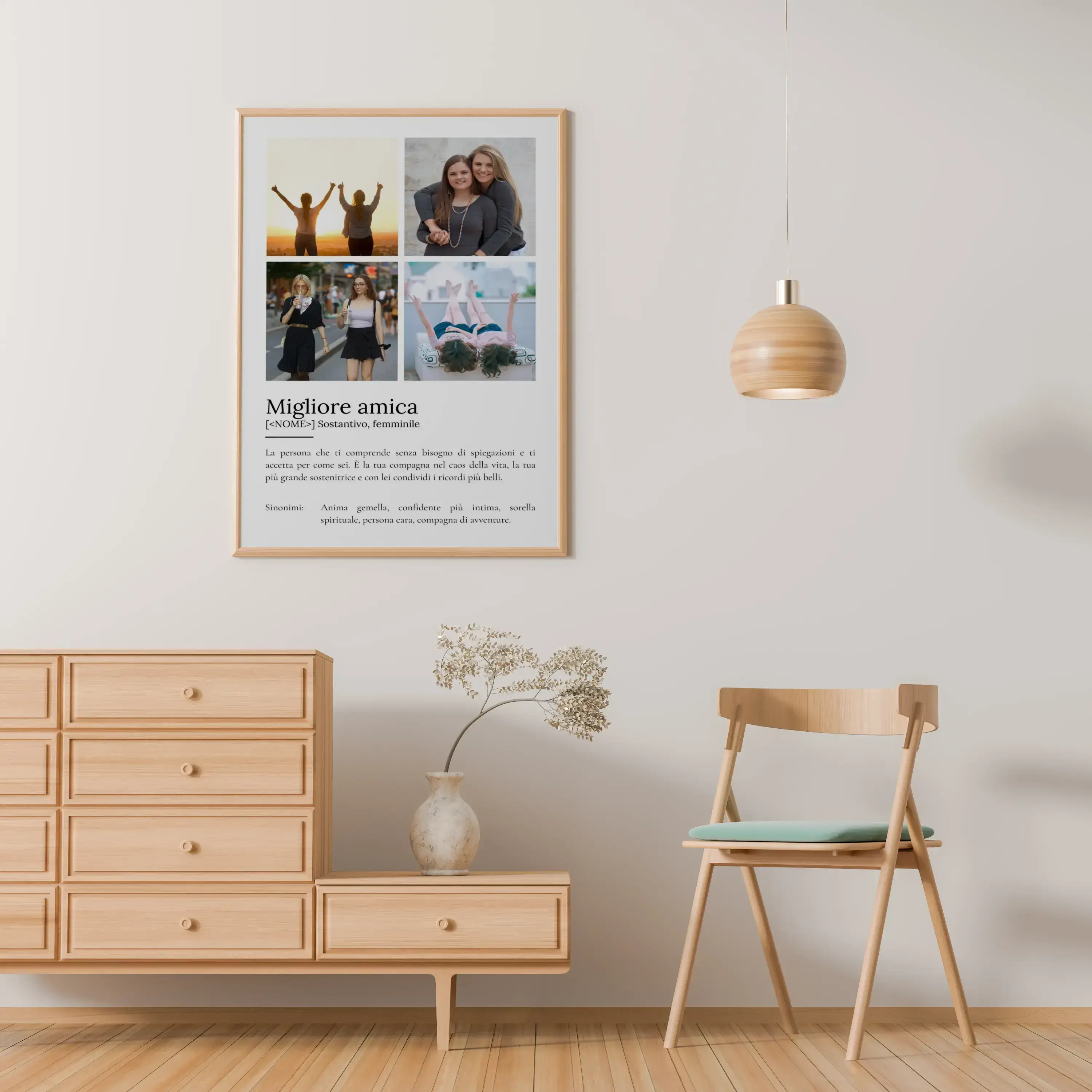 Crea un regalo unico: poster personalizzato "Migliore Amica" con foto e definizione.