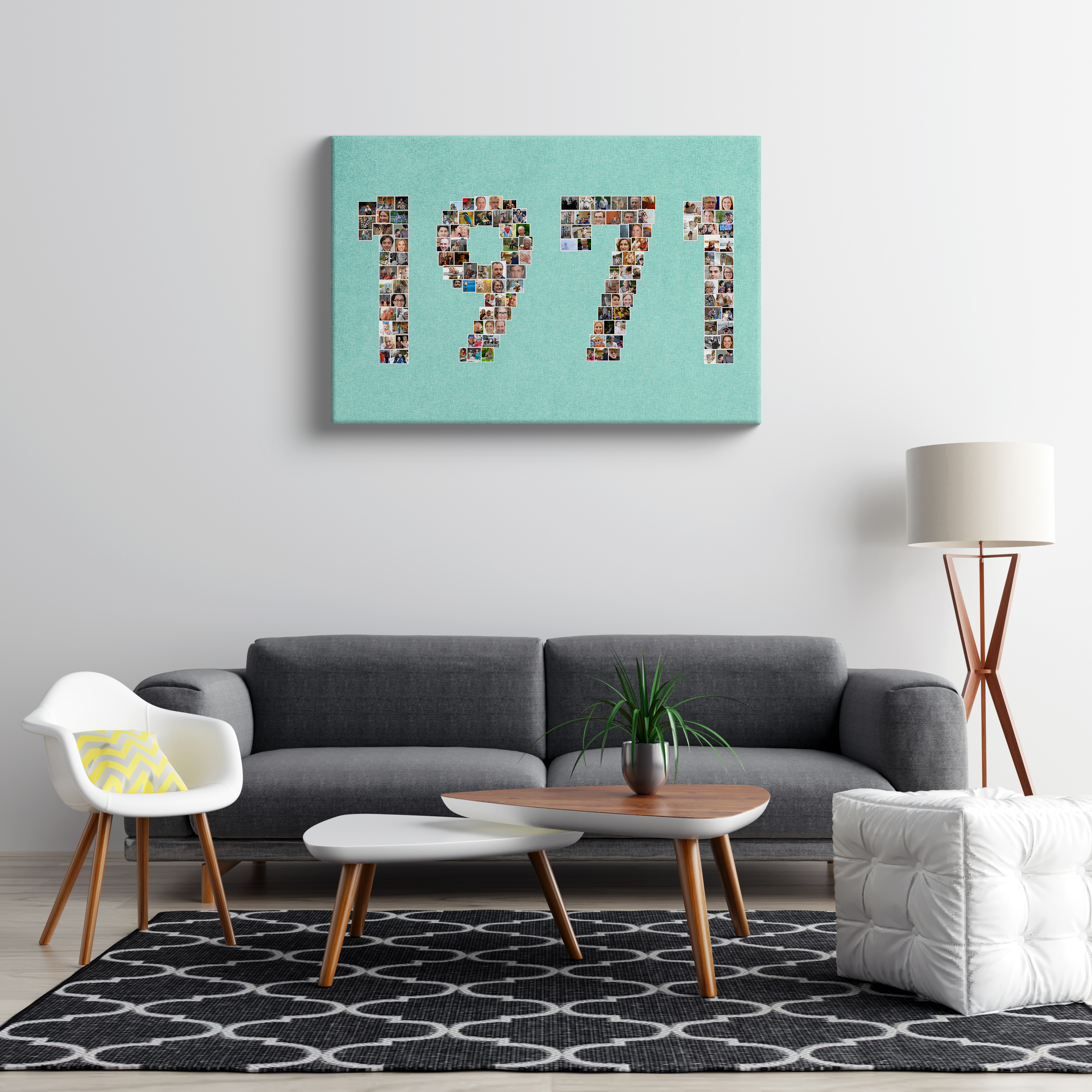 Scopri come trasformare dei semplici momenti fotografici in una memorabile opera d’arte personalizzata. Immagina una fotocollage che forma l'anno 1971, perfetta come regalo di compleanno speciale. Tante piccole foto si uniscono per creare una composizione unica che incornicia anno e ricordi in un unico design. Ideale per amici, famiglia o partner, quest'opera si adatta a ogni momento importante. Personalizza ogni dettaglio, dalla scelta delle foto ai colori di sfondo.