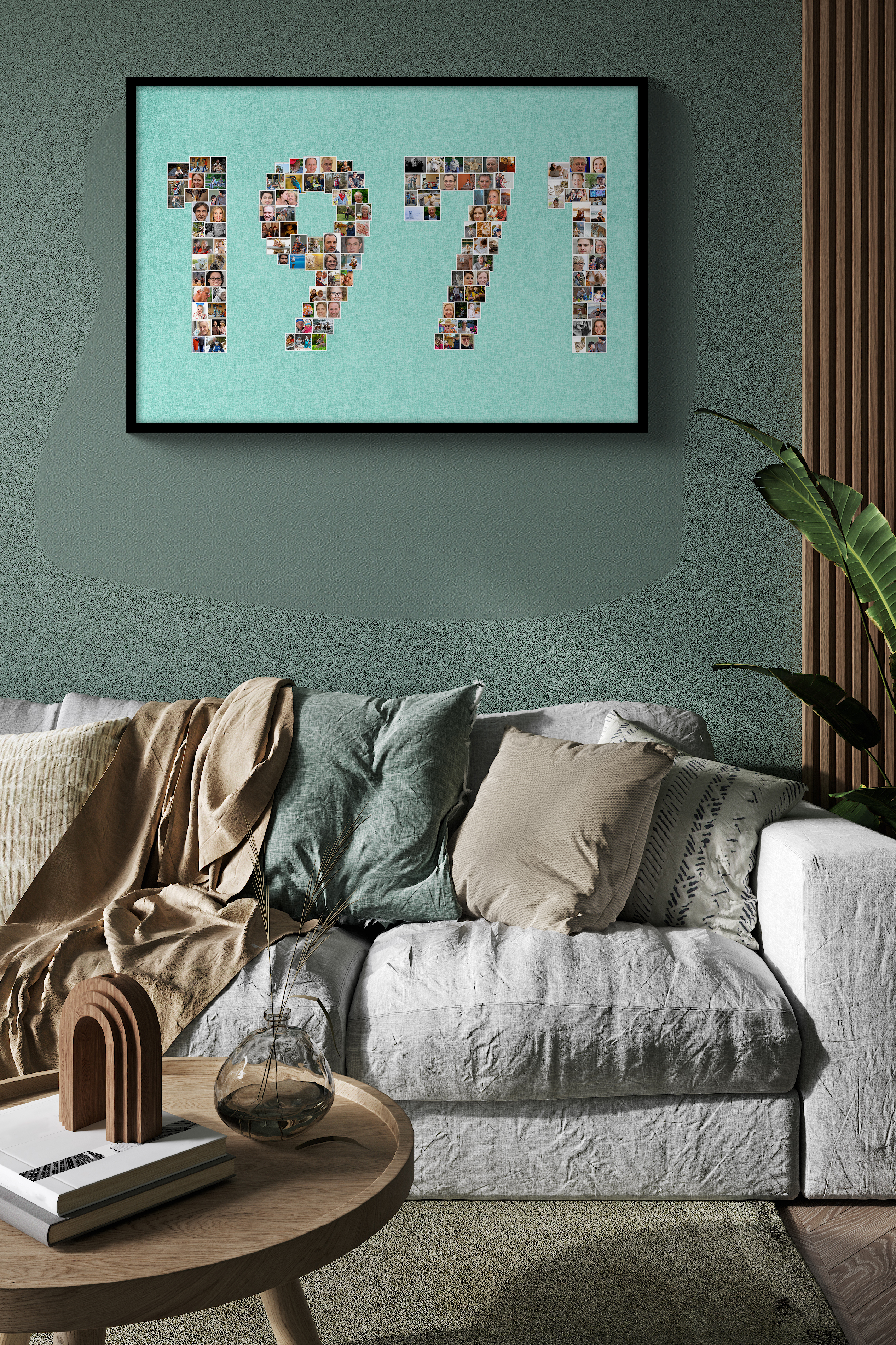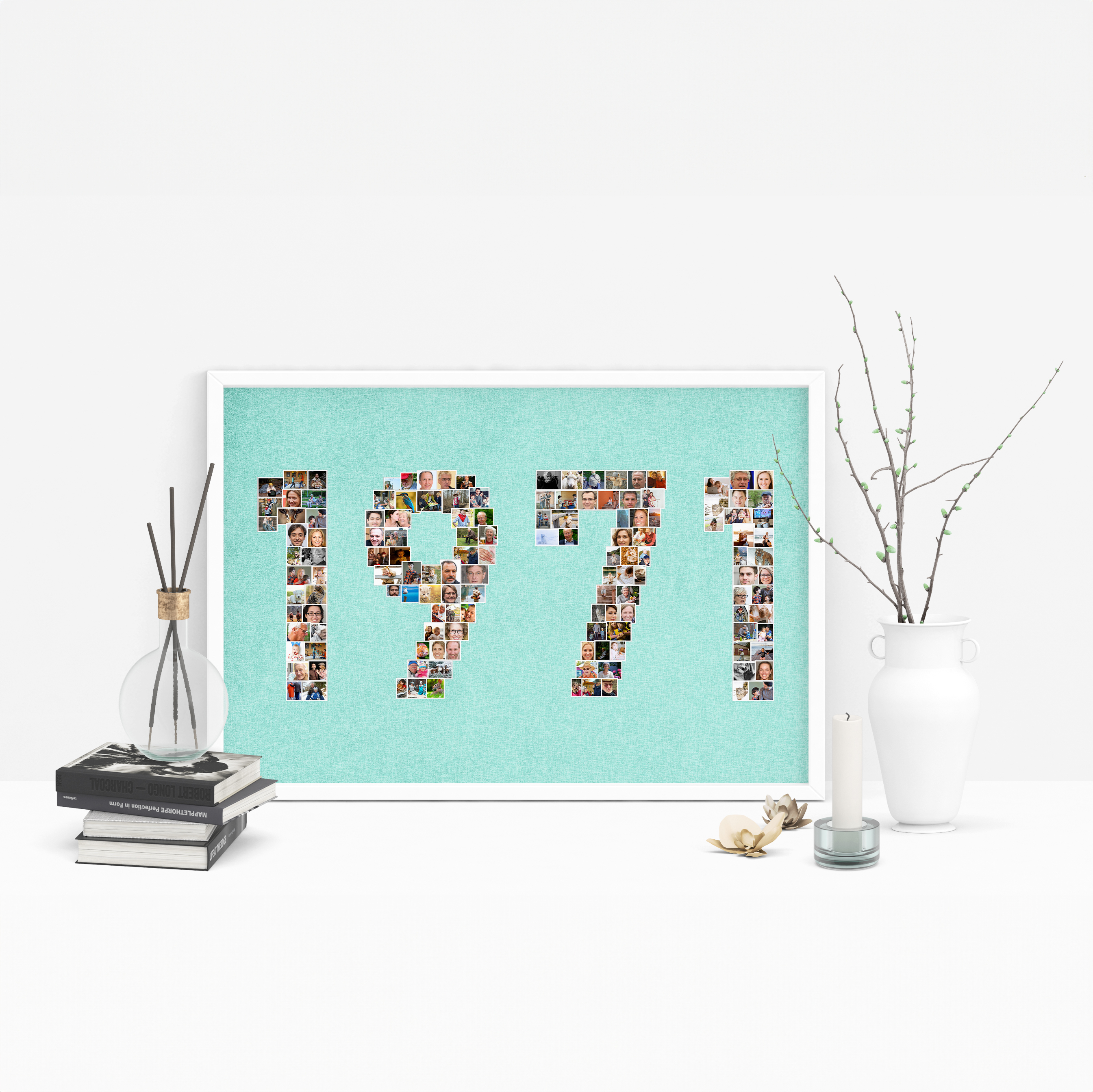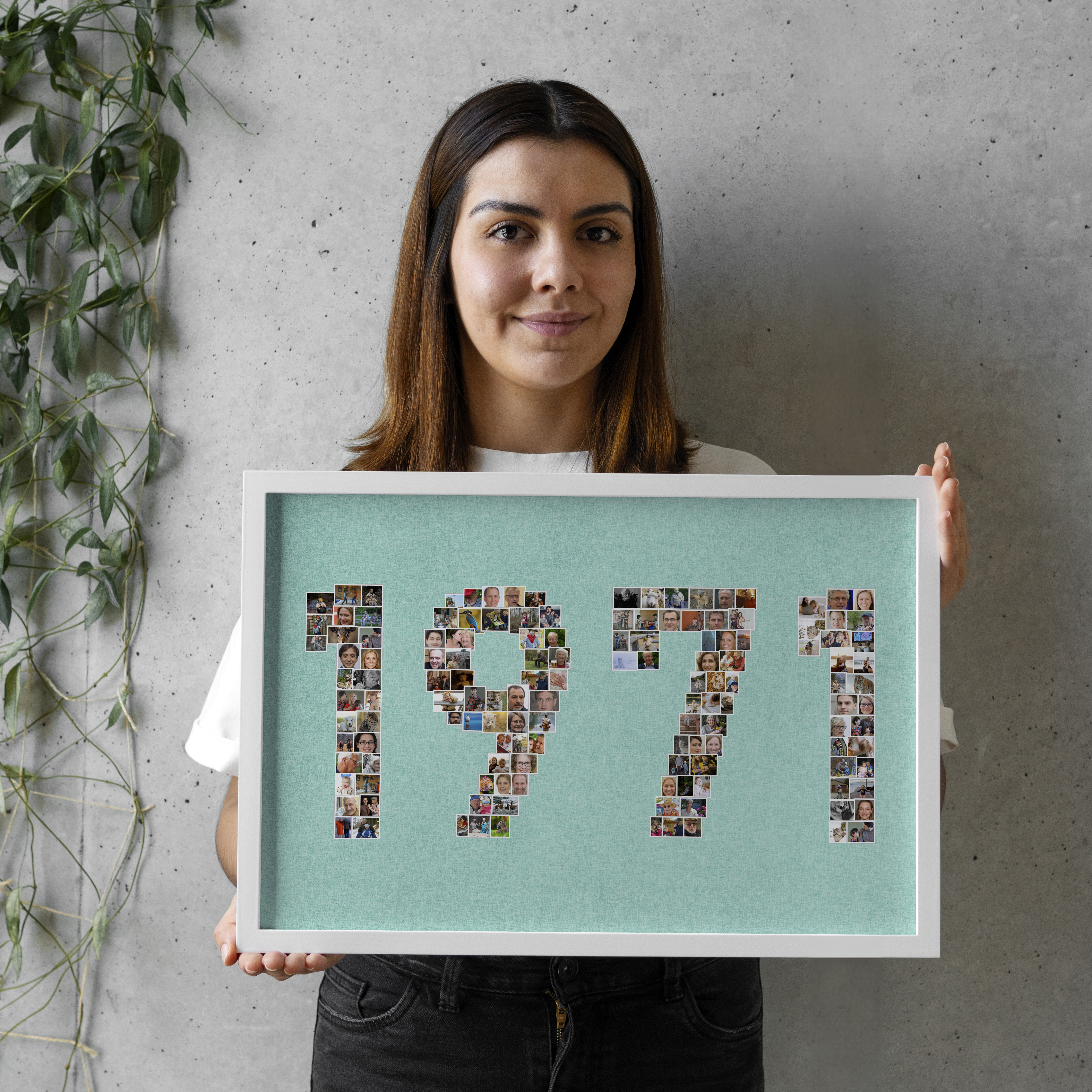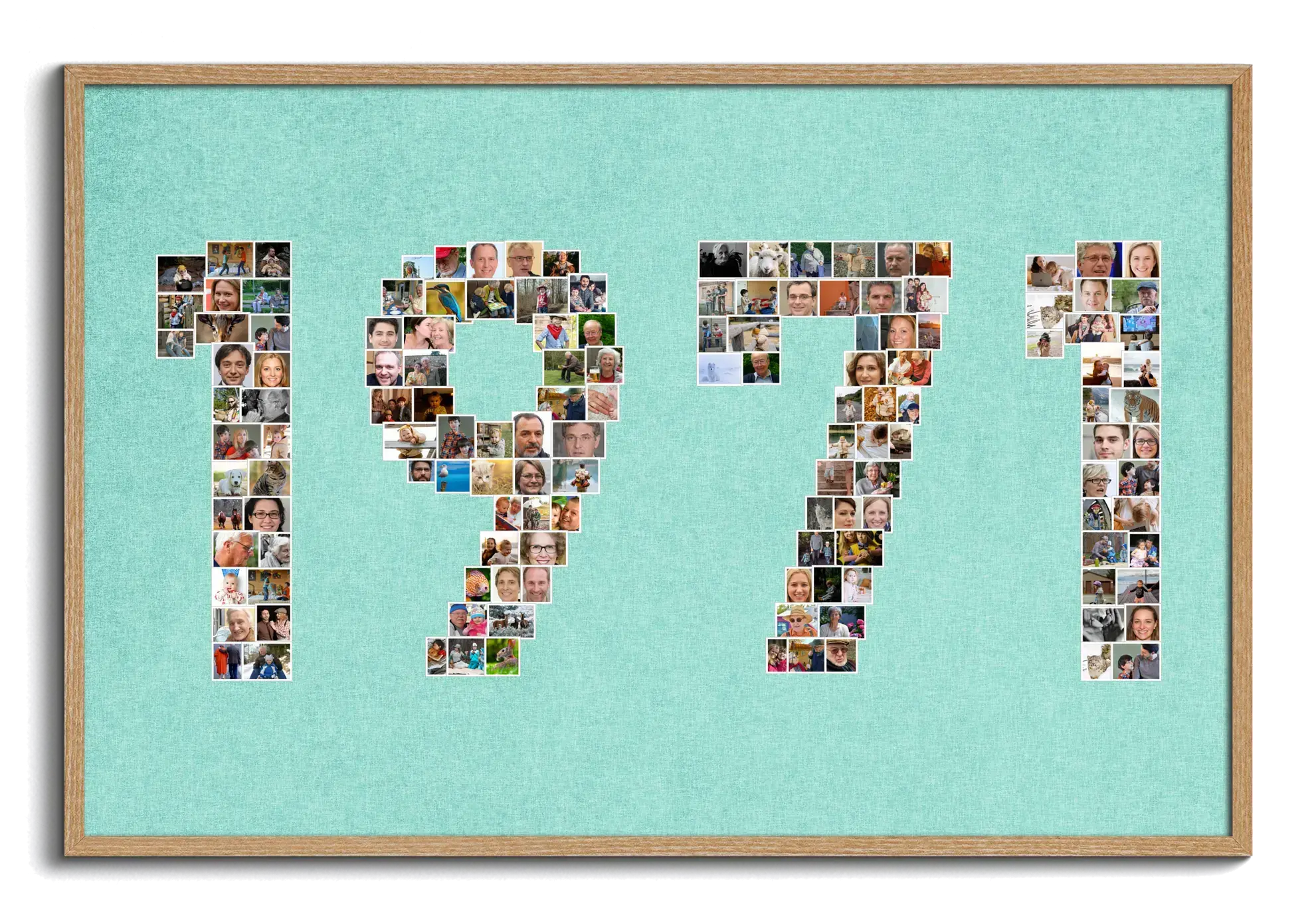 Collage di foto nella forma del numero "1971", un dono unico e personalizzabile per compleanni.