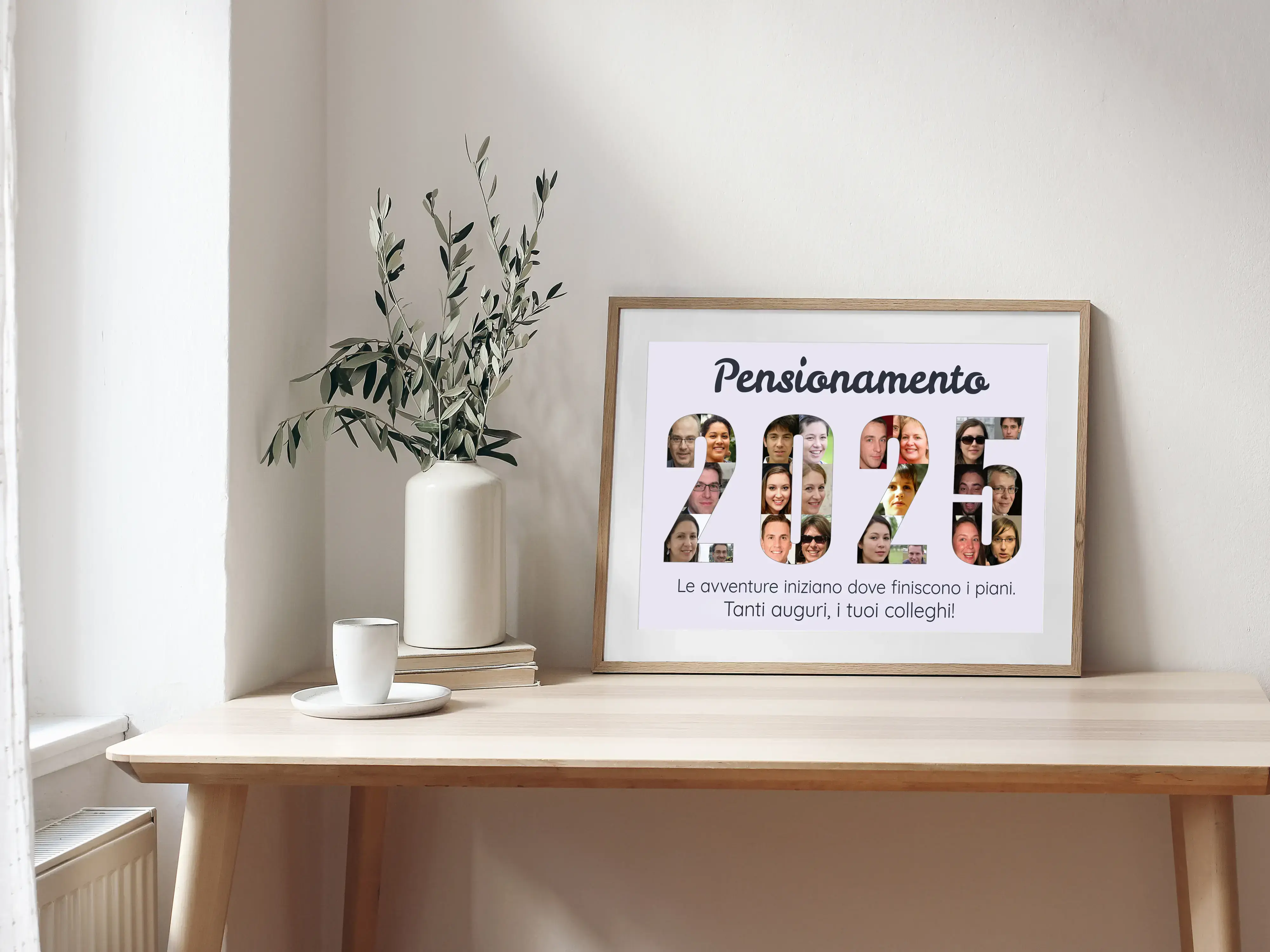 Collage "Pensione": Foto e testi personalizzabili per un regalo unico e memorabile.