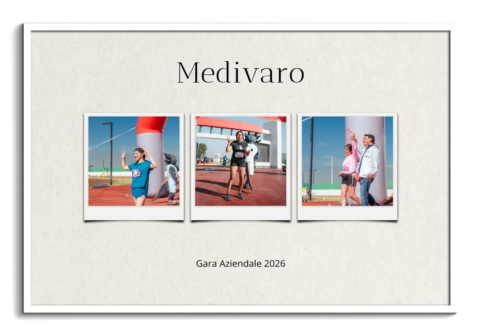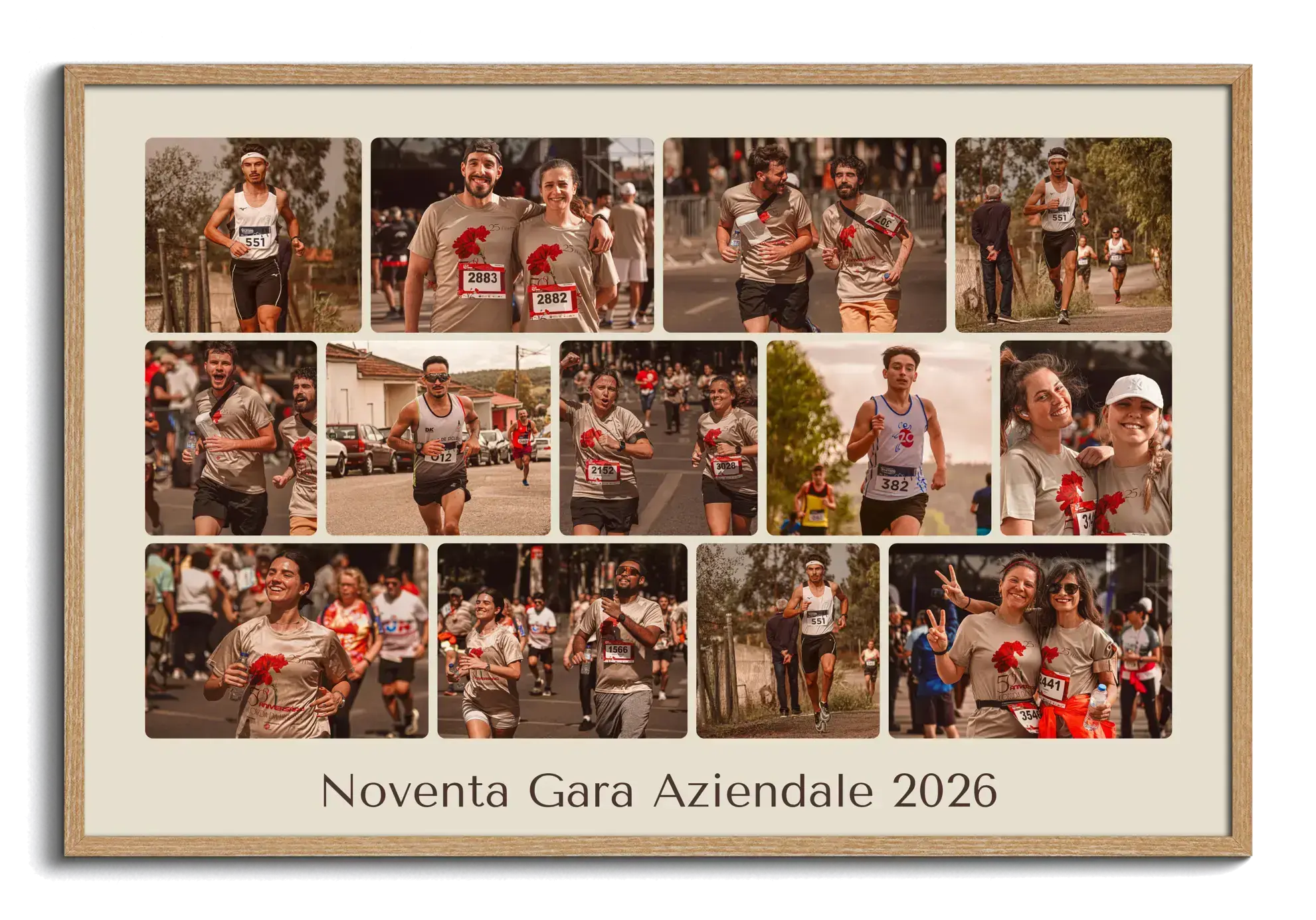 Crea ora il tuo poster dedicato alla corsa aziendale e trasforma i momenti più belli dell’evento in un ricordo da ordinare subito. Questa soluzione è ideale per aziende, team e partecipanti che vogliono raccogliere foto di gruppo, scatti lungo il percorso e highlights della giornata, con testo personalizzato come nome dell’azienda, nome dell’evento o data.
