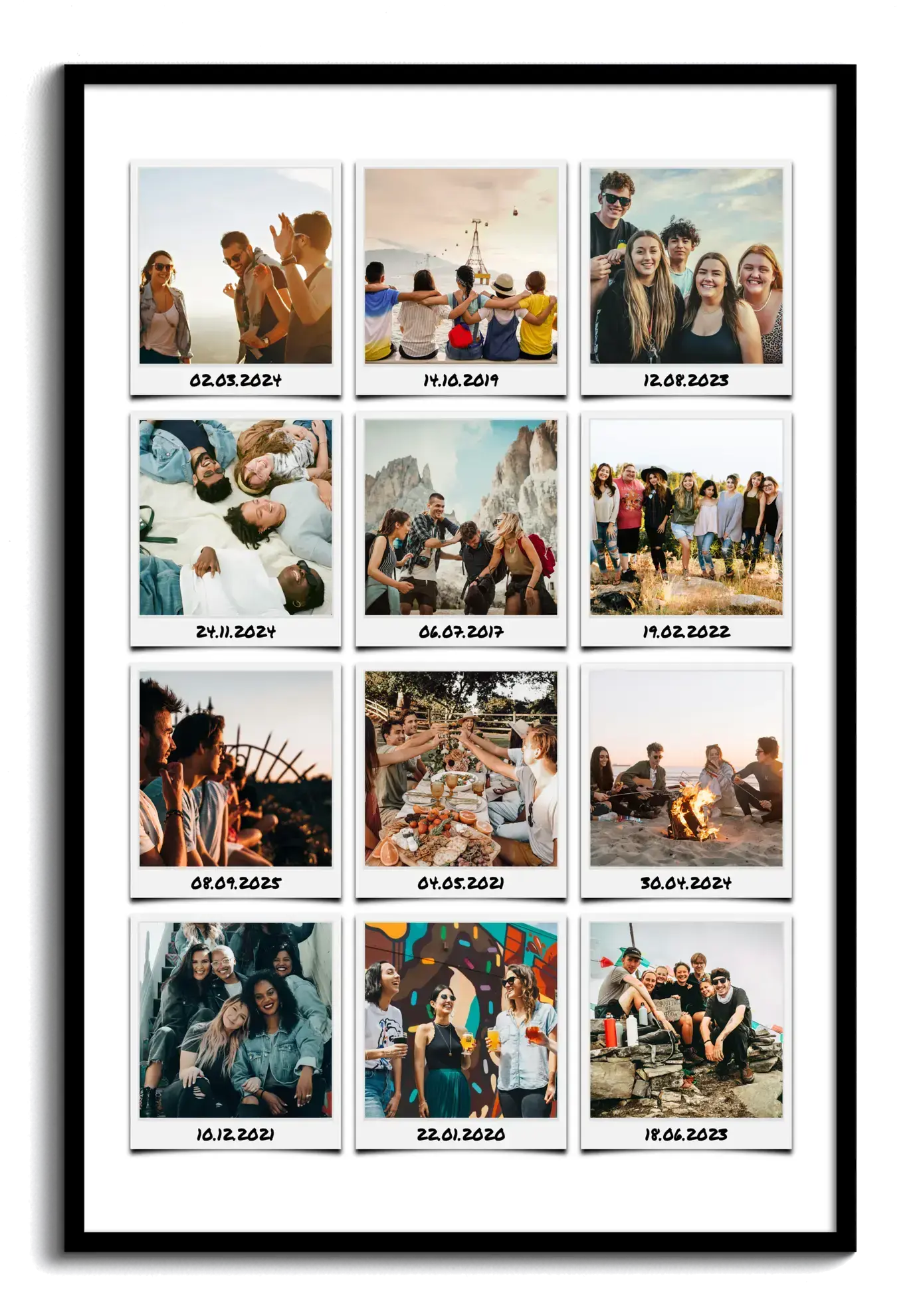 Un collage Polaroid per catturare momenti speciali tra amici con testi personalizzati.