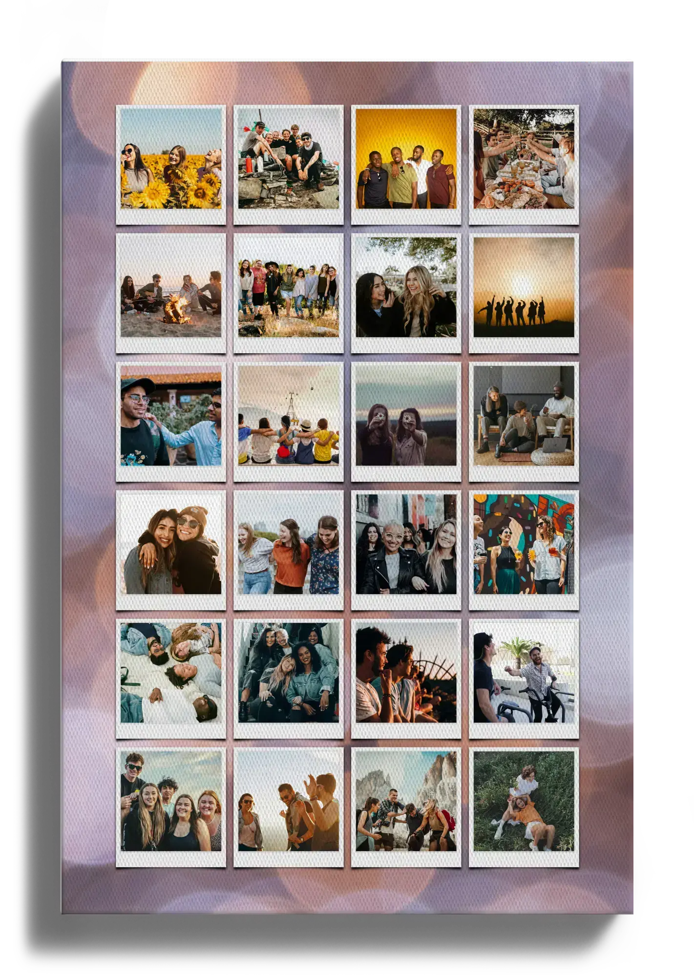 Personalizza il tuo collage con una vasta gamma di opzioni di design. Scegli lo sfondo che preferisci, aggiungi testi in font e colori a tuo piacimento, e applica stili unici come il classico Polaroid. Puoi decidere quanti e quali momenti vuoi includere per creare un pezzo veramente tuo.