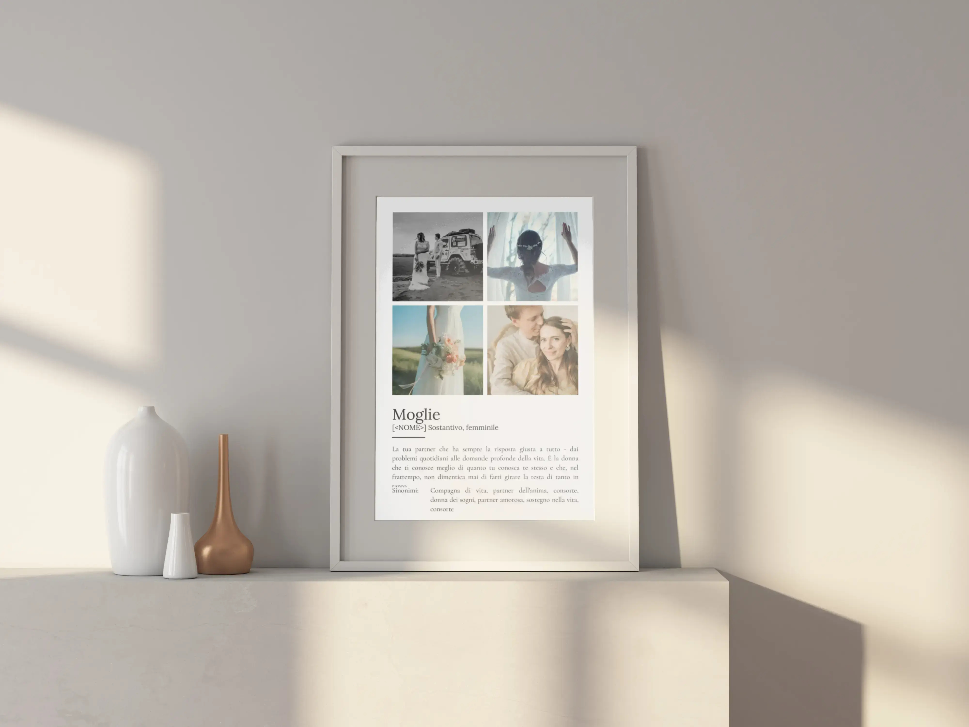 Realizzare la tua fotocollage è semplice e intuitivo. Scegli tra una vasta gamma di modelli creativi, carica le tue foto, posizionale e personalizza i dettagli della tua composizione in pochi passaggi. Grazie alla nostra tecnologia di anteprima live, puoi vedere in tempo reale come sarà il prodotto finale.