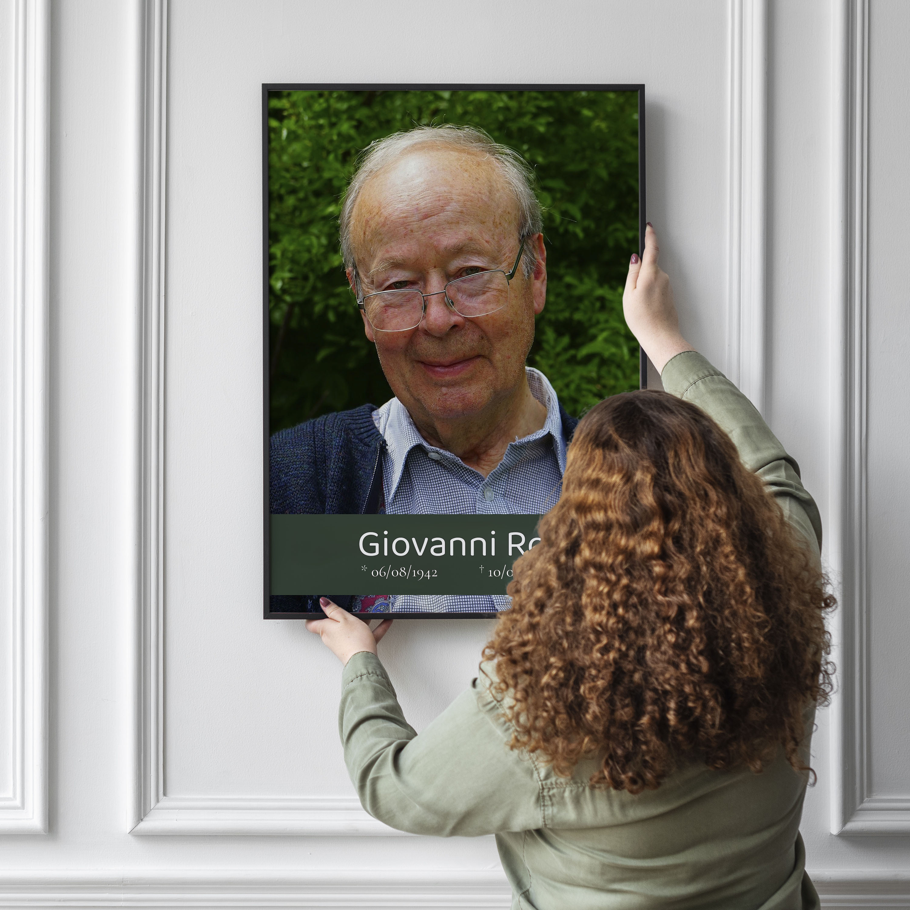 Elegante tela commemorativa personalizzabile: ricordo intimo per casa o cerimonie funebri.