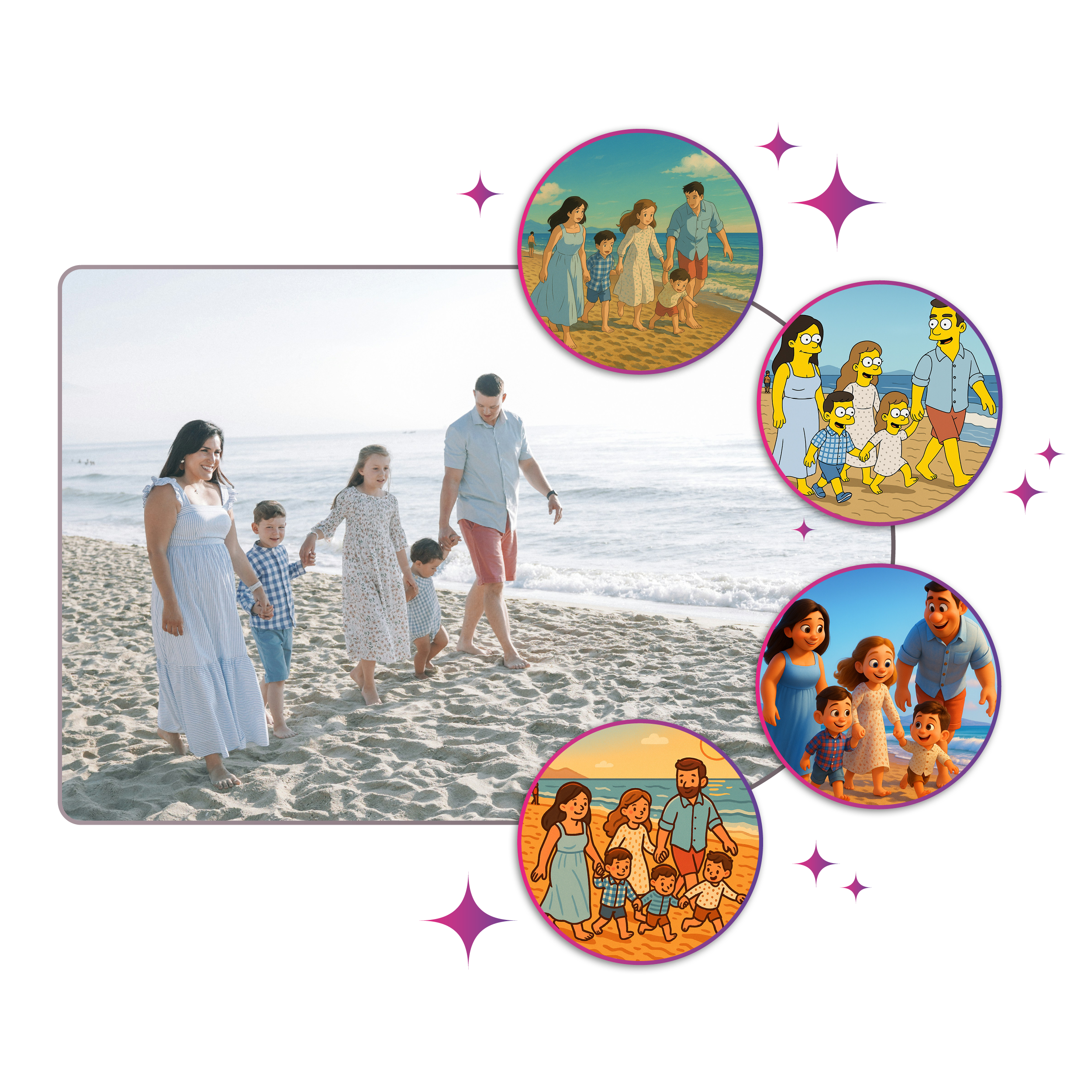 Scegli tra diversi stili IA – dall'anime all'acquerello. Gli esempi ti mostrano come potrebbe apparire la tua immagine in ciascuno stile.