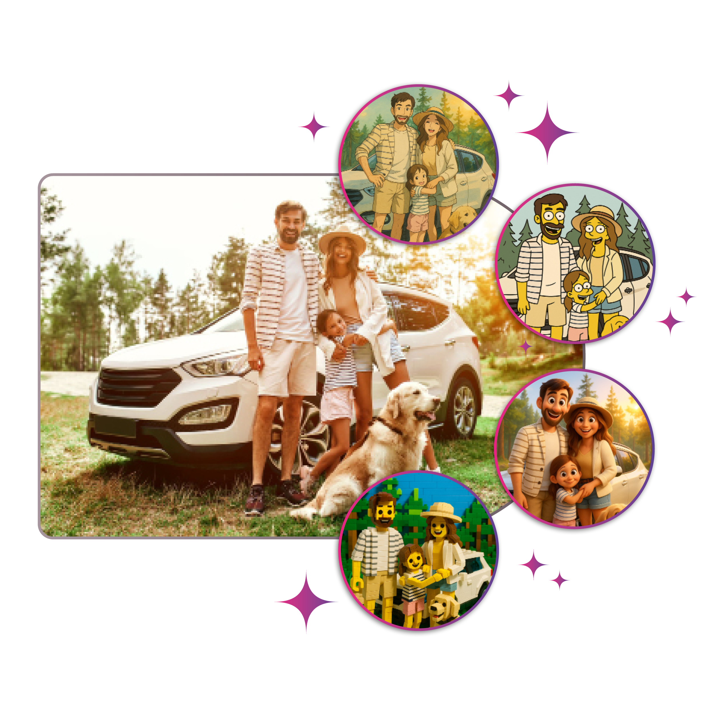 Scegli tra diversi stili IA – dall'anime all'acquerello. Gli esempi ti mostrano come potrebbe apparire la tua immagine in ciascuno stile.